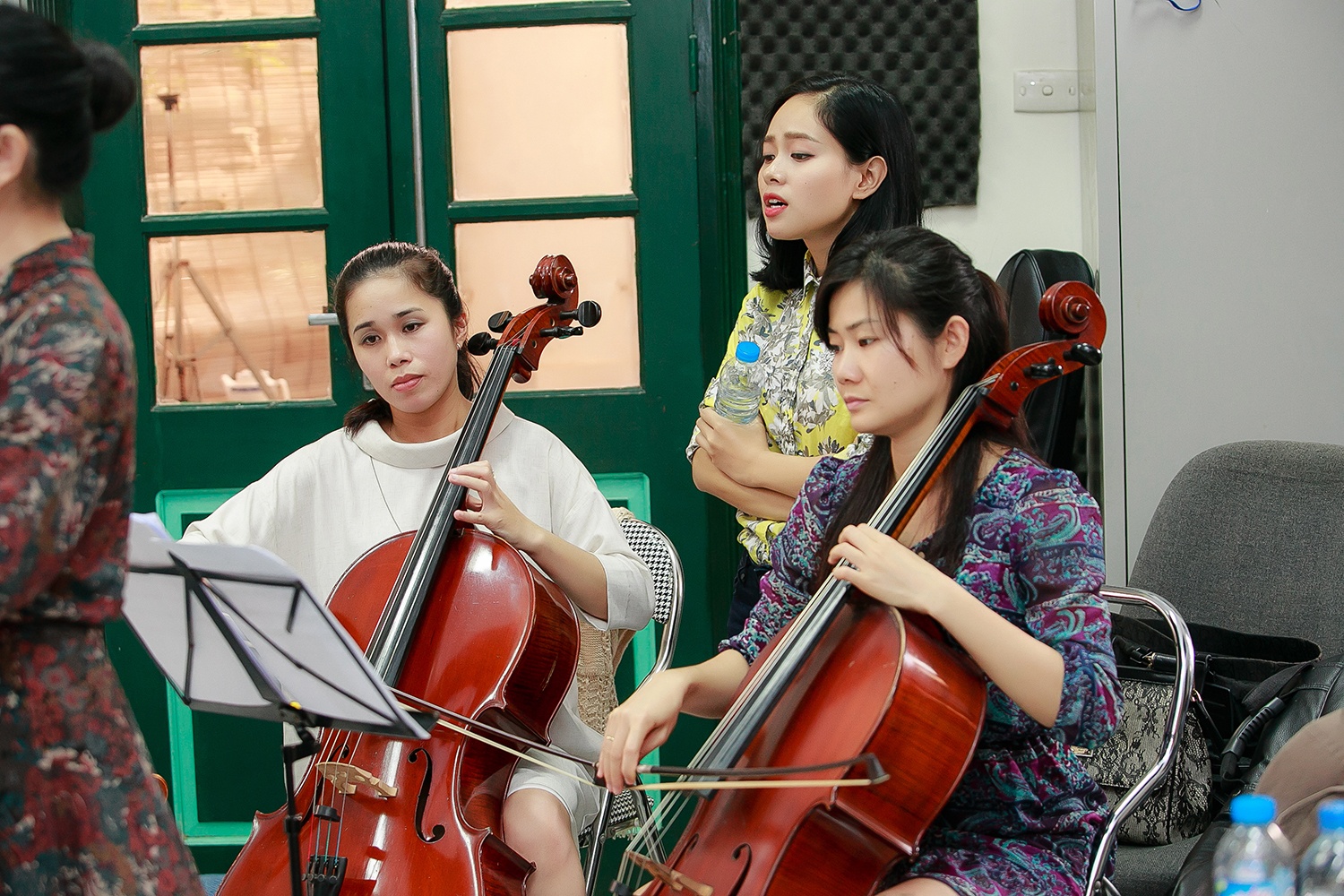 | Hoàng Quyên tiết lộ trong live show của cô sẽ có sự hỗ trợ của dàn nhạc dây, dàn kèn và nhiều nhạc cụ cổ điển nên phần tập luyện giữa Hoàng Quyên và các nghệ sĩ được đầu tư phần lớn thời gian. |