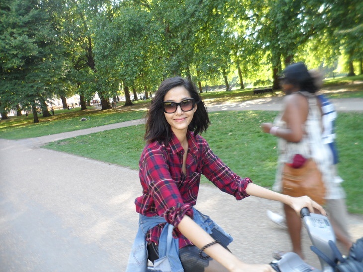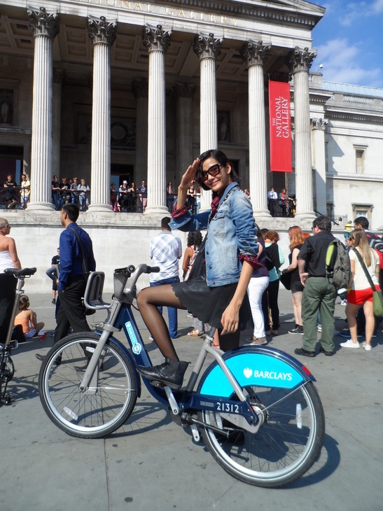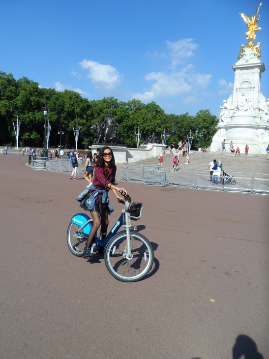 | Trong hành trình khám phá London, Hoàng Thùy quyết định thuê ngay một chiếc xe đạp để tự vi vu đến những điểm du lịch nổi tiếng của vùng đất này. |
