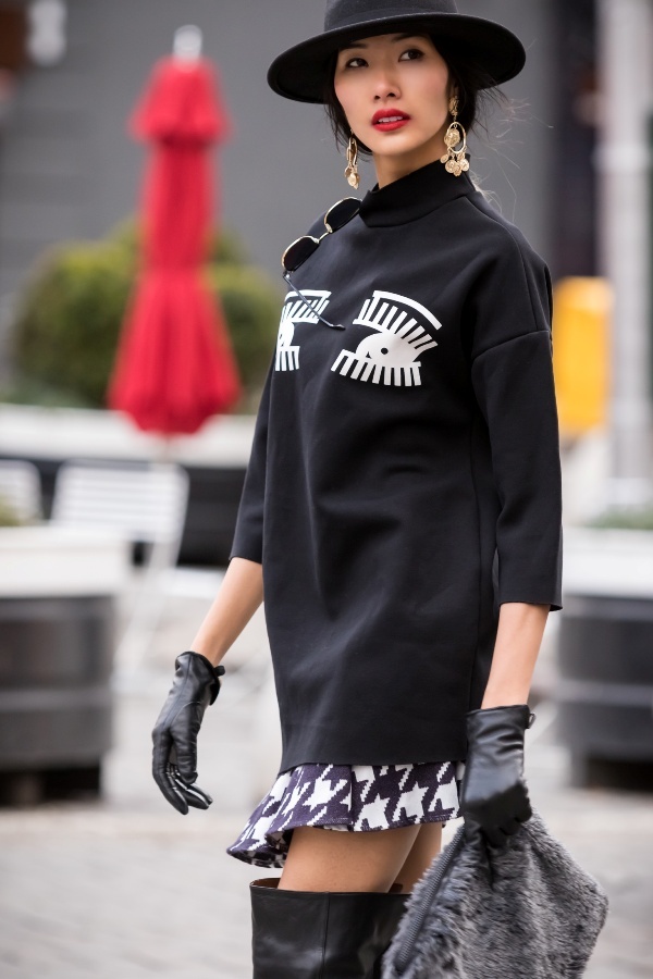 | Nữ quán quân Vietnam's Next Top Model nổi bật trên phố với set trang phục tông đen cá tính, đậm màu sắc street style. Mỗi lần có dịp công tác nước ngoài, chân dài Next Top Model đều tranh thủ thời gian ghi lại những khoảnh khắc đẹp khi sải bước trên phố tấp nập. |