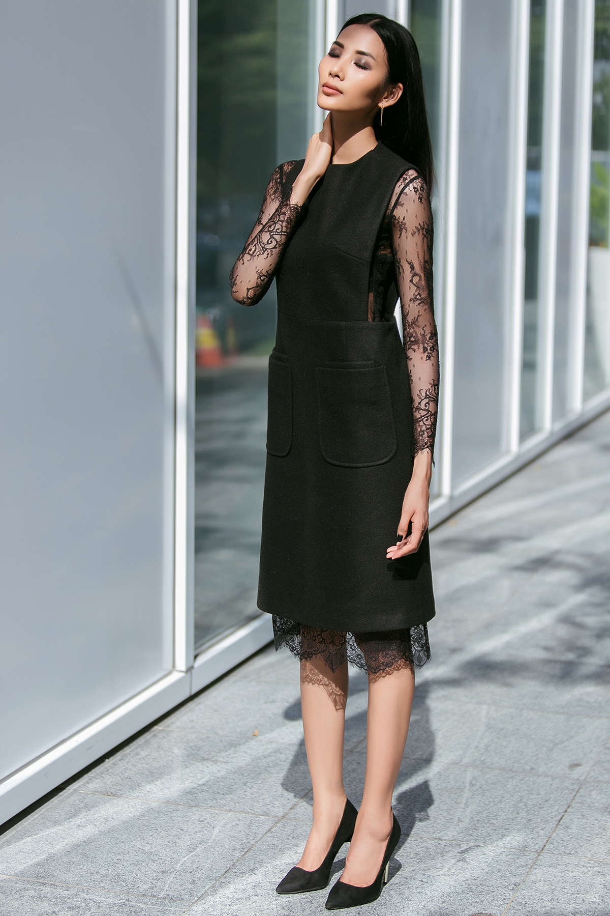 | Kiểu váy sơ mi được thêm chi tiết ren mềm mại, dễ dàng ứng dụng và tạo cảm hứng kết hợp theo mùa. |