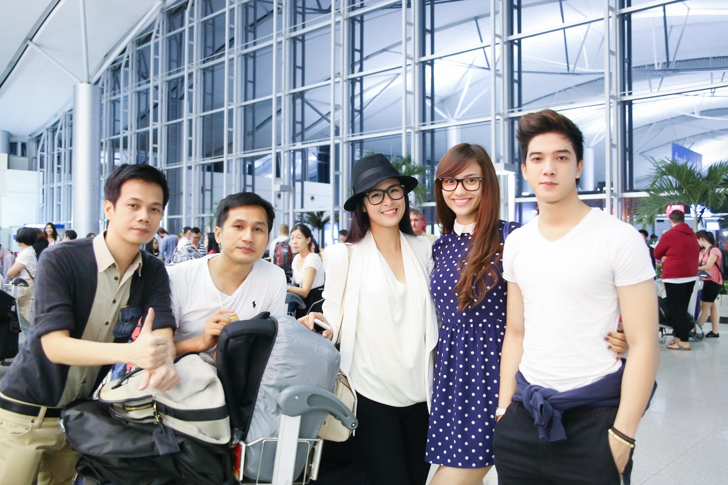 Hoàng Thùy - Hồng Quế mặt mộc ra sân bay đi lưu diễn châu Âu