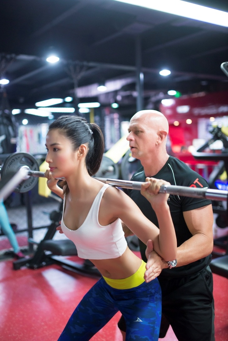 Chính vì điều đó, Hoàng Thuỳ thường xuyên đến phòng tập để nhanh chóng sở hữu cơ thể và số đo đạt chuẩn quốc tế.