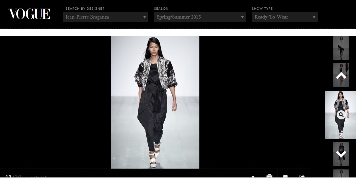 | Vào lúc 15h chiều (giờ London) ngày 12/9, Hoàng Thuỳ có mặt trong show diễn của nhà thiết kế Jean Pierre Braganza. Show thời trang được truyền hình trực tiếp tại Fashion Scout. Bộ sưu tập của Jean Pierre Braganza gây ấn tượng tới người hâm mộ với các thiết kế mạnh mẽ trên chất liệu mềm mại cùng những hoạ tiết độc đáo. |
