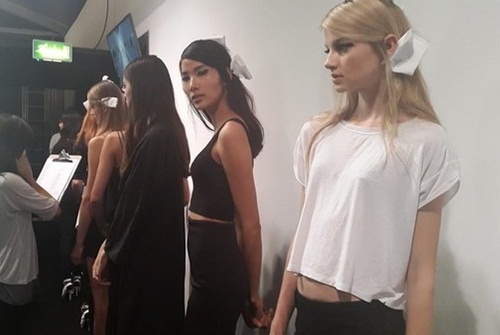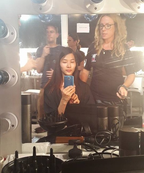 Những hình ảnh phía hậu trường được cô ghi lại. Nữ người mẫu luôn tỏ ra chuyên nghiệp, đúng giờ trong mọi công tác chuẩn bị và thân thiện khi làm việc cùng ê-kíp nước ngoài.