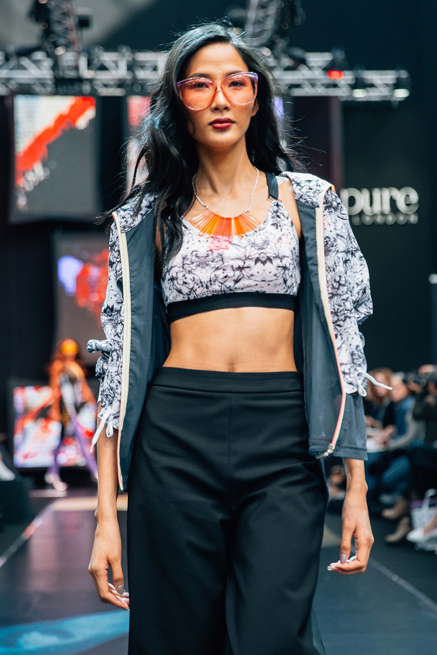 Sau màn trình diễn bikini đầu tiên thuộc khuôn khổ sự kiện Pure London, diễn ra tại Anh, Hoàng Thùy tiếp tục góp mặt ở 4 show diễn của các nhà thiết kế uy tín cùng sự kiện.