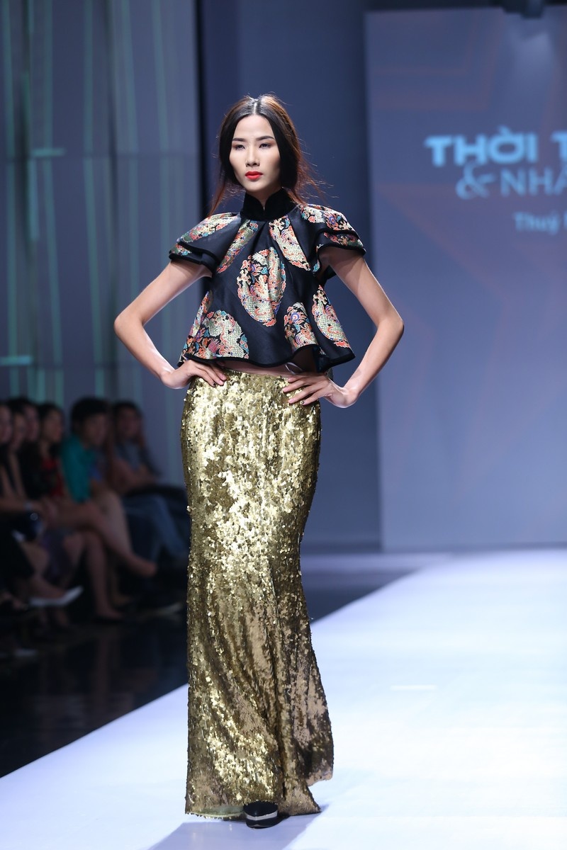 Quán quân Vietnam's Next Top Model mùa thứ 2 - Hoàng Thùy xuất hiện ấn tượng với vai trò vedette trong màn trình diễn BST mới của NTK Thủy Nguyễn diễn ra vào tối qua 15/12. Trưởng thành từ cuộc thi truyền hình thực tế, đến nay Hoàng Thùy đã là các tên được nhiều NTK ưu ái và tin tưởng, cô thường đảm nhận vai trò mở màn, kết màn quan trọng trong các show trình diễn thời trang trong nước.