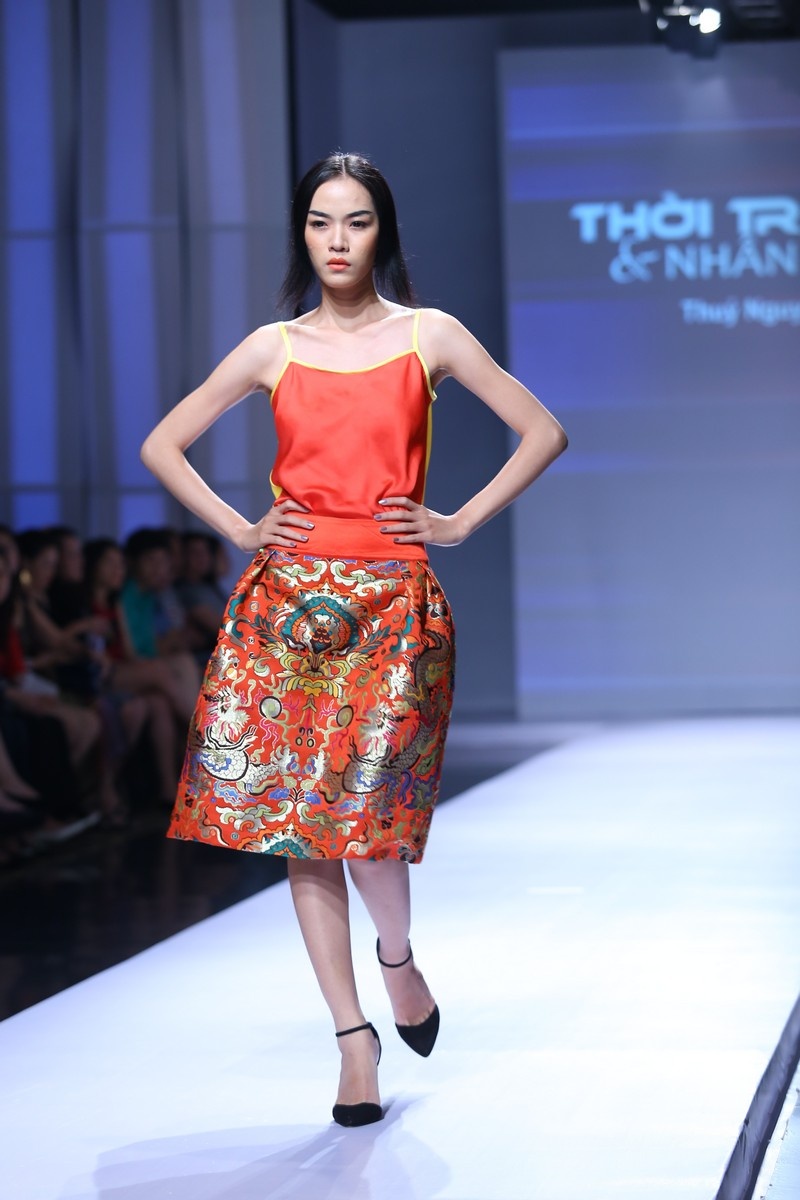 Góp mặt trong chương trình Thời trang & Nhân vật, NTK Thủy Nguyễn đem đến BST thời trang xuân - hè 2014 khá đẹp mắt và thú vị. Với sở trường thiết kế tối giản và trẻ trung, BST của NTK Thủy Nguyễn có những nét mới lạ, độc đáo và không kém phần duyên dáng. Gam màu được chú trọng là sắc độ tươi sáng, rực rỡ mang âm hưởng mùa xuân rất rõ nét.