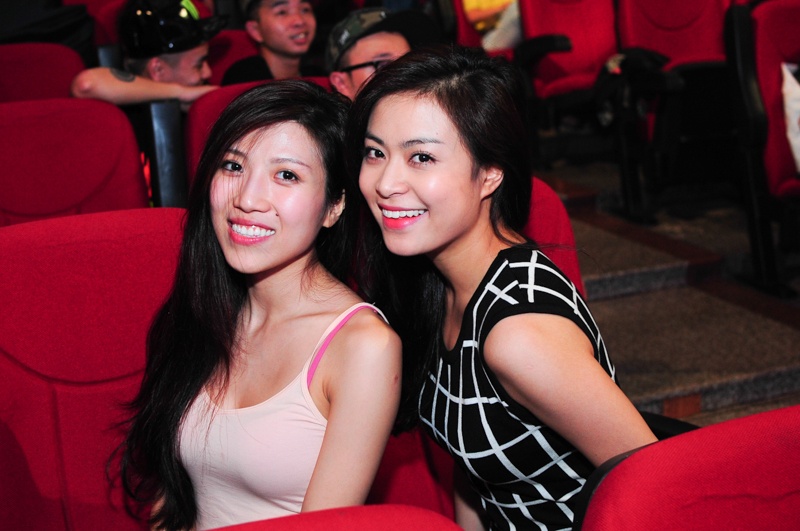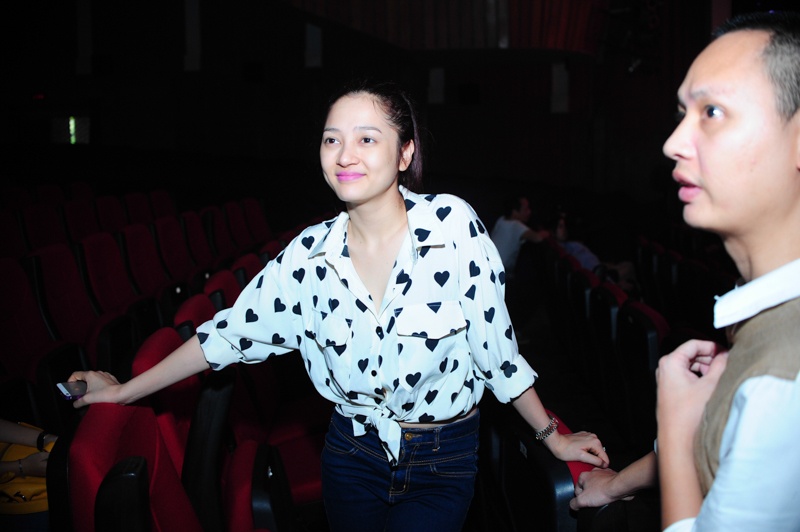 Hoàng Thùy Linh và Trang Pháp ngồi dưới sân khấu trò chuyện chờ đợi đến lượt mình luyện tập. Sau vai nữ chính trong phim điện ảnh đầu tay Thần tượng, nữ diễn viên kiêm ca sĩ xinh đẹp tập trung cho các dự án âm nhạc. |