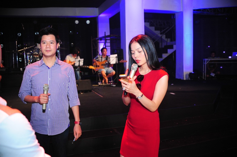 Ngoài vai trò ca sĩ, Quang Dũng còn làm khách mời trao giải cùng Thu Minh trong đêm Gala. |