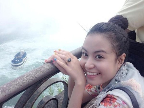 Với gương mặt không son phấn, cô tự tin pose hình mọi nơi.