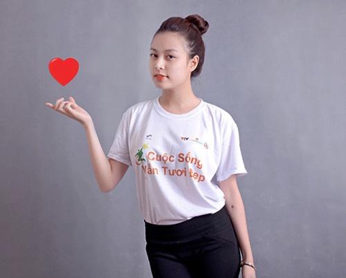 Một chiếc áo thun trắng cũng đủ giúp cô ca sĩ trẻ trung, xinh xắn với đúng tuổi thực.
