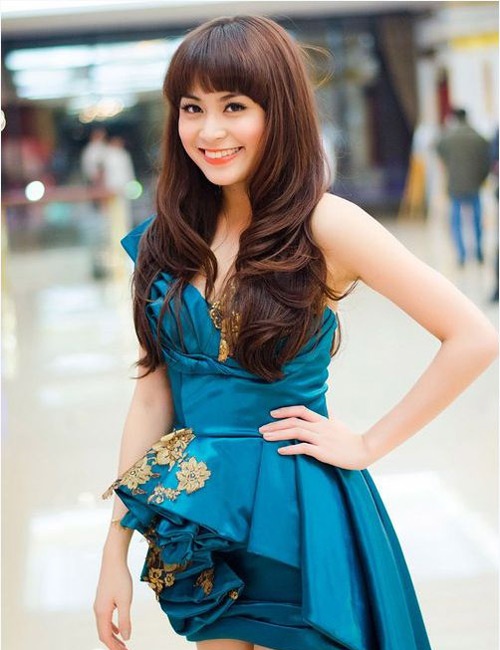 Mái bằng tuy có làm Hoàng Thùy Linh trẻ trung hơn nhưng kết hợp với phần uốn lọn và kiểu trang phục rối rắm, trông cô trở nên thiếu hấp dẫn.