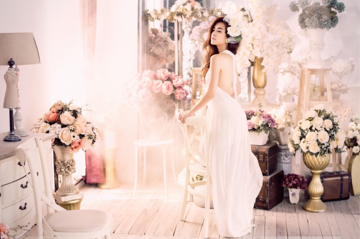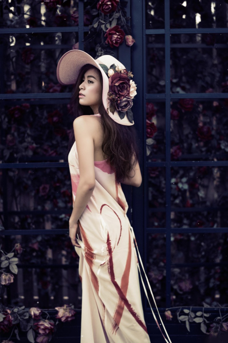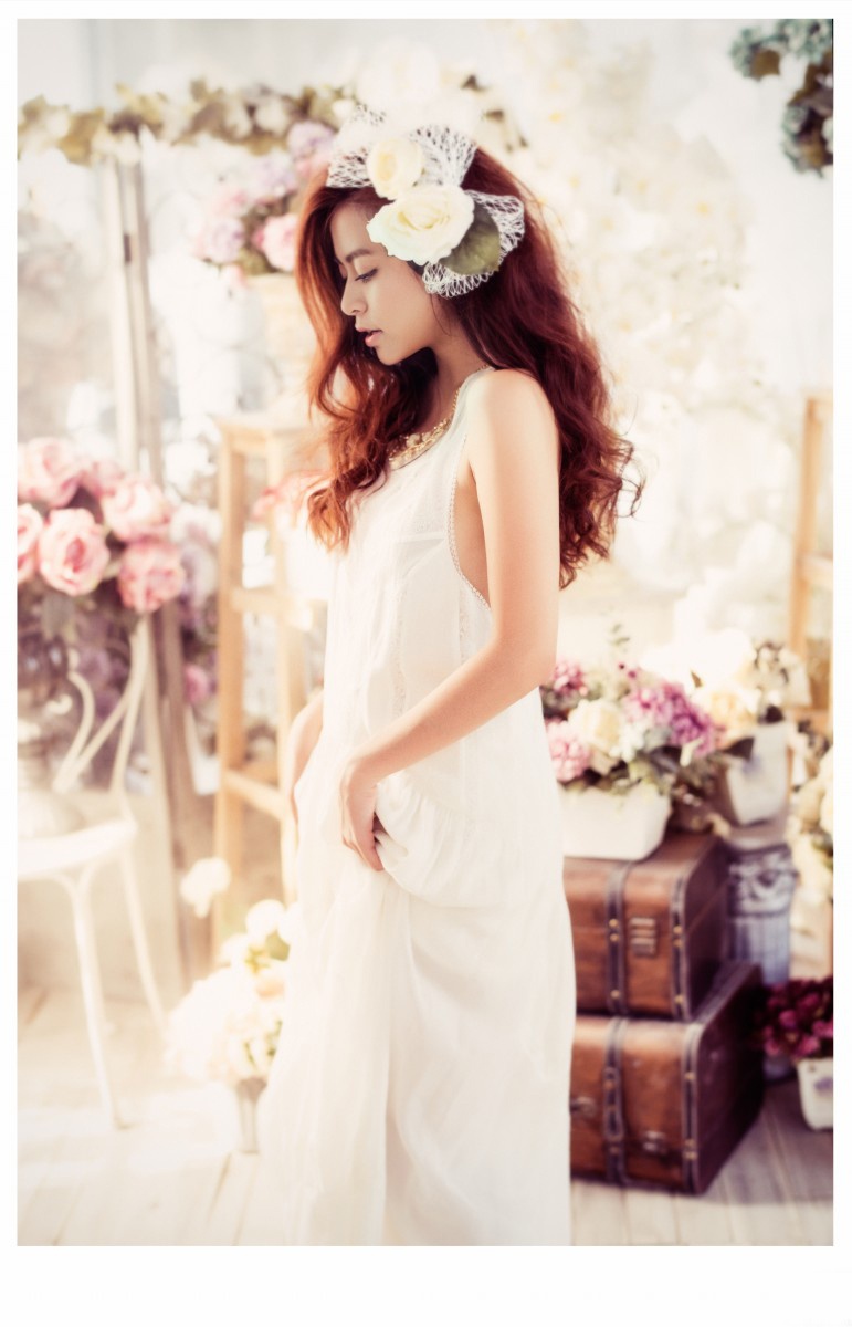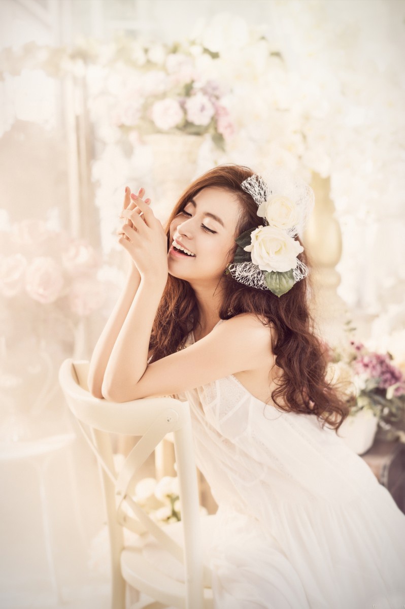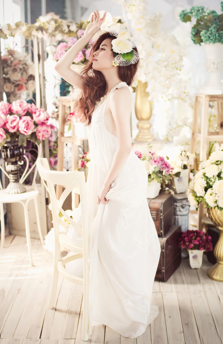 | Bộ ảnh được thực hiện với bối cảnh không gian hoa lãng mạn. Hình ảnh mong manh, sâu lắng trong bộ ảnh mới được cho là phù hợp với hình tượng quyến rũ của nữ ca sĩ sinh năm 1988. |