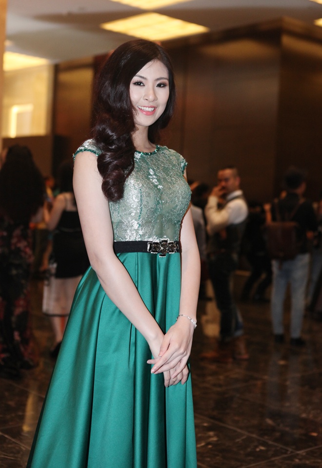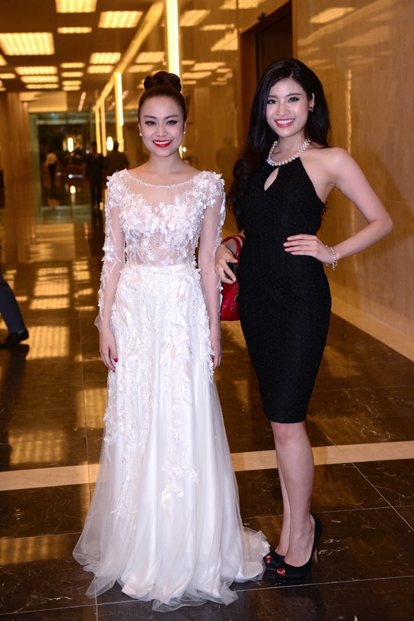 Hoa hậu Ngô Phương Lan cũng góp mặt với tư cách khách mời. Người đẹp diện bộ váy dáng suôn tông đen, che khuyến điểm ngoại hình kém thon gọn.