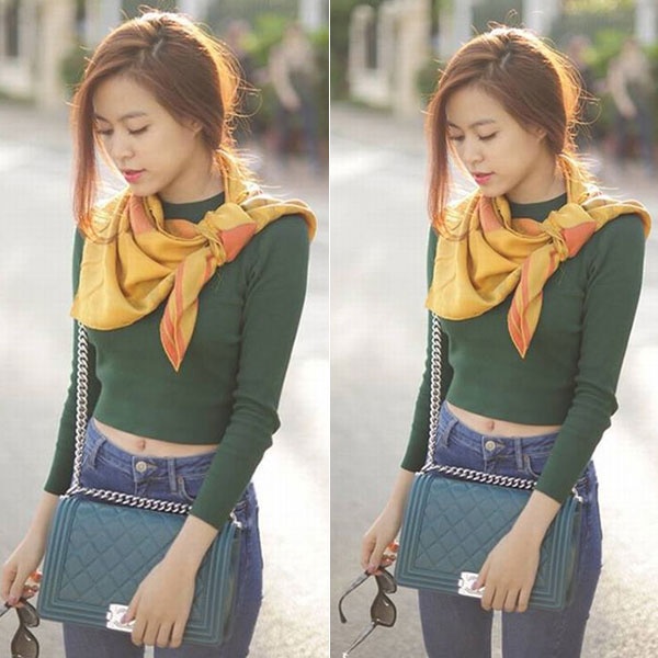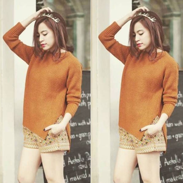 | Trong những ngày thu se lạnh, bạn có thể diện một chiếc áo len lửng, khoe vòng eo thon thả. |