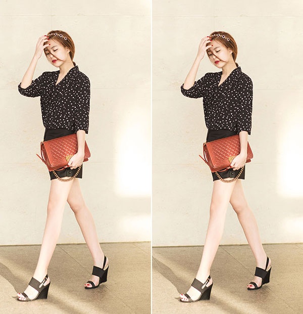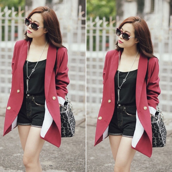 | Quần short không chỉ là trang phục "hot" ngày hè mà vào đầu thu, món đồ này cũng nên có trong tủ đồ của chị em. Cô gái tuổi đôi mươi có thể phối quần short đen đi cùng áo blazer dáng dài để tạo nên vẻ ngoài lãng mạn. |