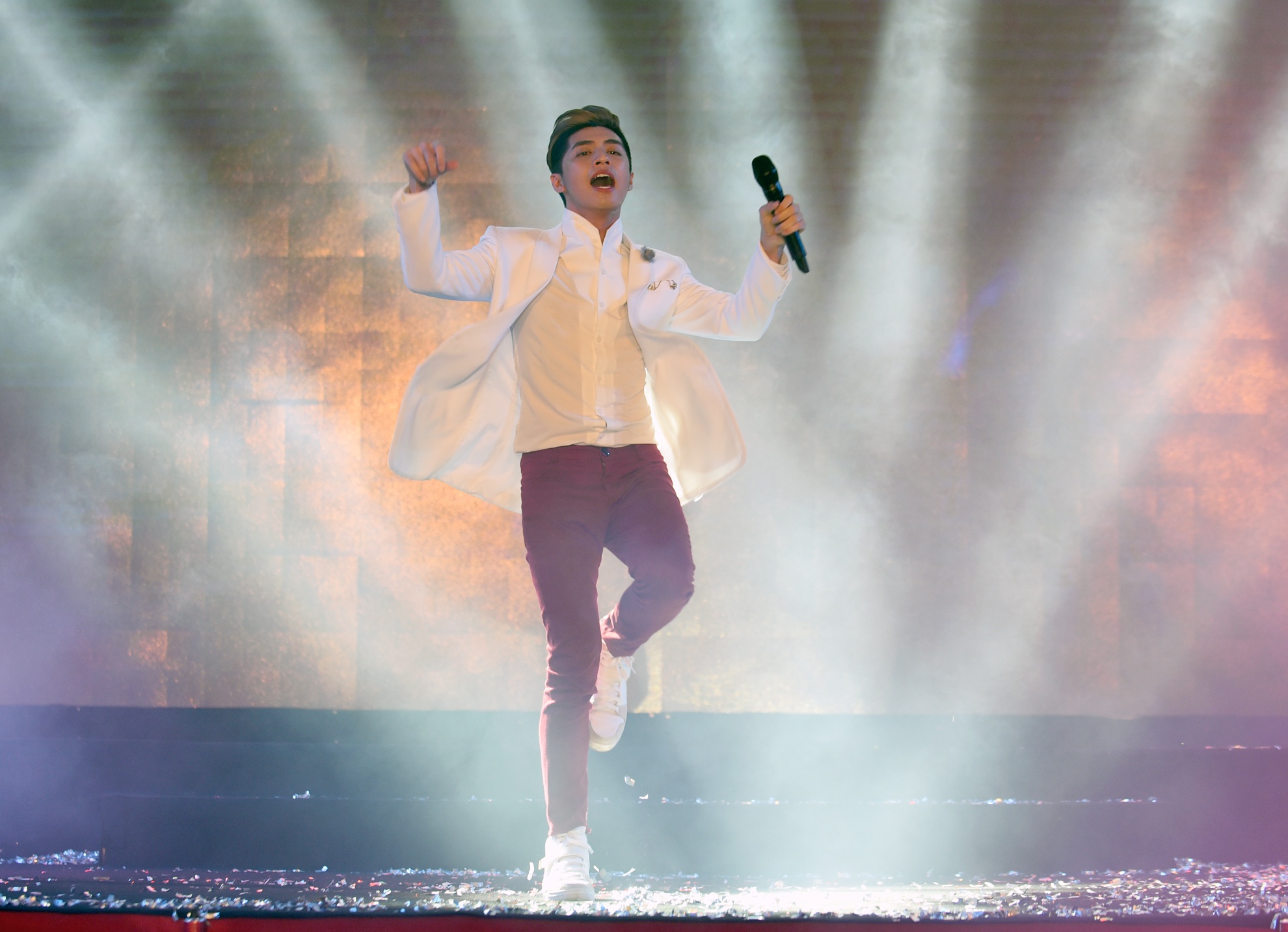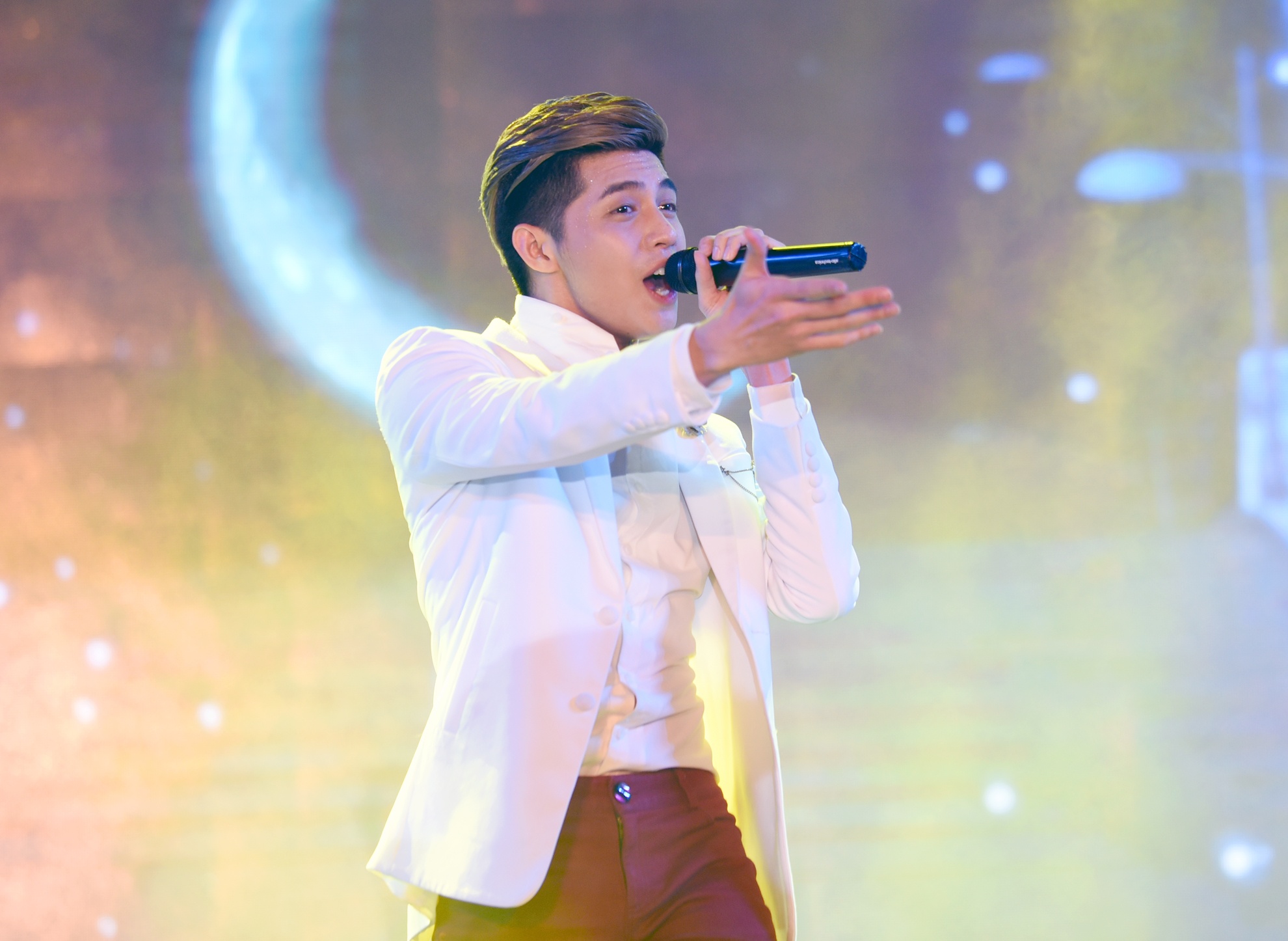 | Anh khuấy động sân khấu cùng các ca khúc được nhiều bạn trẻ yêu mến như Gạt đi nước mắt, Xa em, Mãi mãi bên nhau. |
