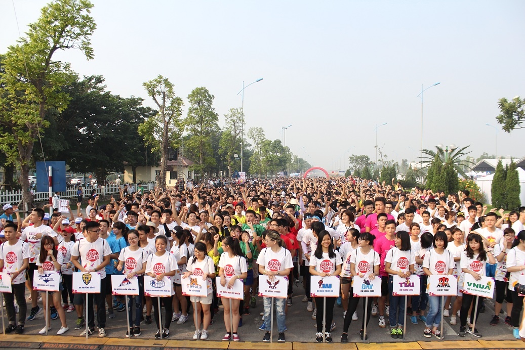| Hơn 5.000 sinh viên Hà Nội có mặt từ rất sớm để tham dự Đường chạy kết nối - UniGames 2015. |
