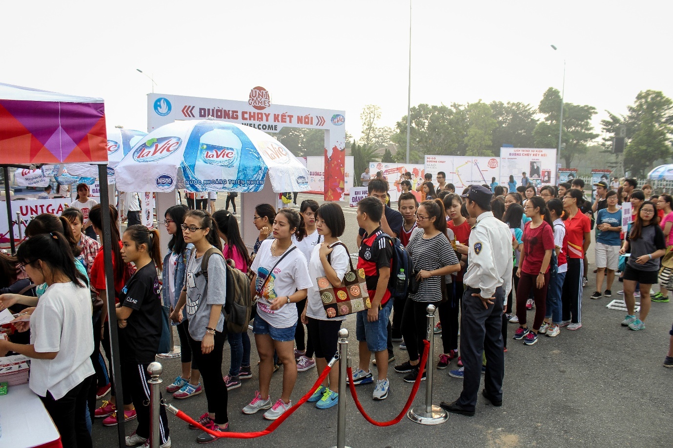 | Các bạn trẻ đã có mặt từ rất sớm để đăng ký tham gia Đường chạy kết nối - UniGames 2015. |