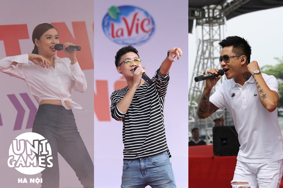| Tuấn Hưng - Hoàng Thùy Linh và Justa Tee quậy hết mình cùng sinh viên tại Đường chạy kết nối - UniGames Hà Nội. |