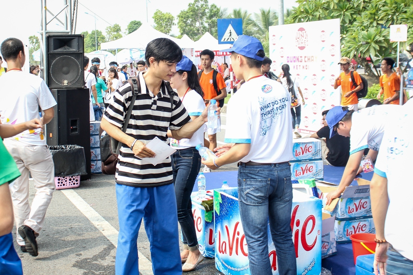 | Các bạn trẻ luôn được tiếp thêm năng lượng khi qua mỗi trạm tiếp nước của Nhãn hàng La Vie. |
