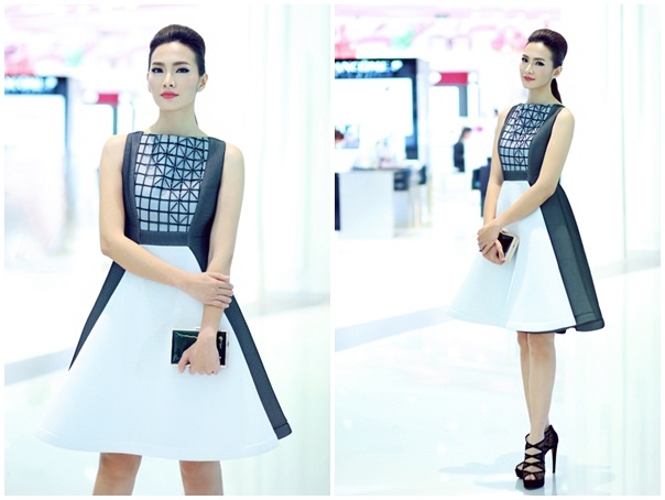 | Anh Thư chọn phong cách nữ tính, nền nã khi tham dự sự kiện trong tuần. Bộ cánh tông màu trắng đen cùng đường cắt ghép tinh tế giúp nữ diễn viên - người mẫu nhận được điểm cộng hình ảnh. Bà mẹ một con được đánh giá là một trong những người đẹp giữ vững phong độ thời trang nhờ trang phục tinh tế và trang điểm nhẹ nhàng. |
