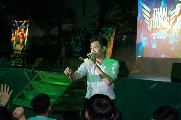 Bên cạnh phần giao lưu cởi mở với nhiều phần hỏi đáp thú vị, 4 diễn viên chính của phim Thần tượng đã “đốt cháy” sân trường Lương Thế Vinh bằng những ca khúc được khán giả trẻ yêu thích.