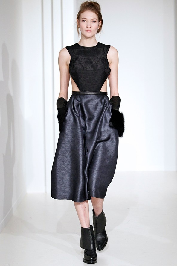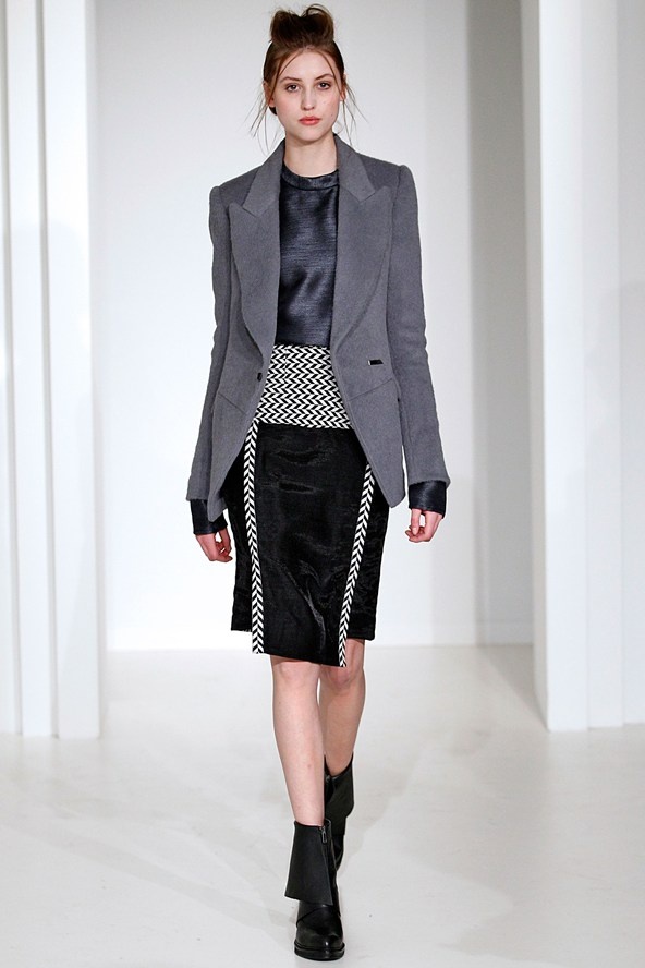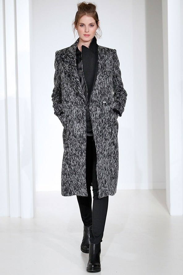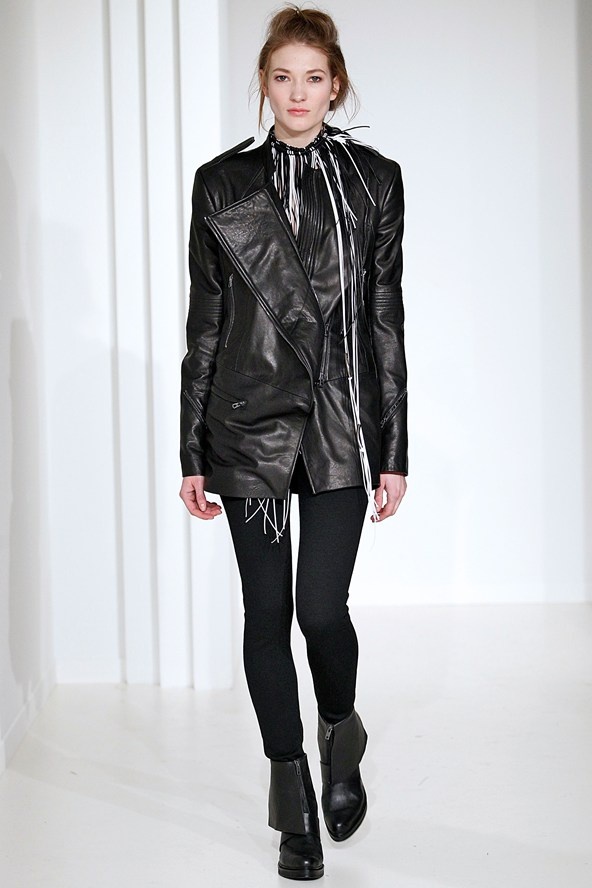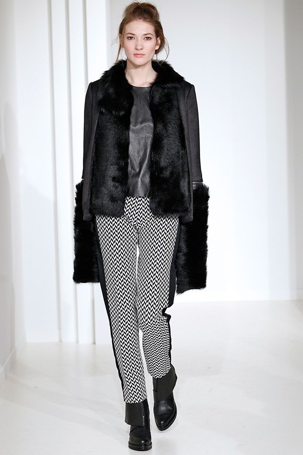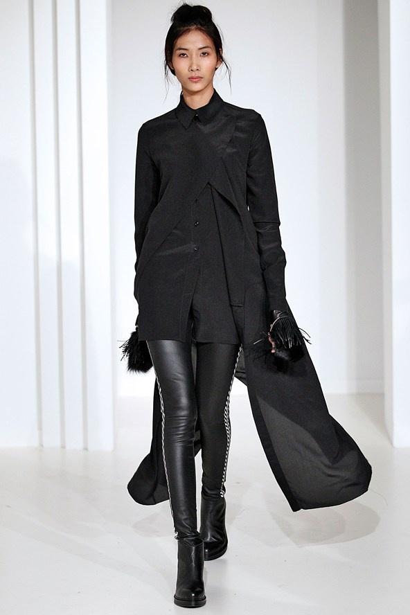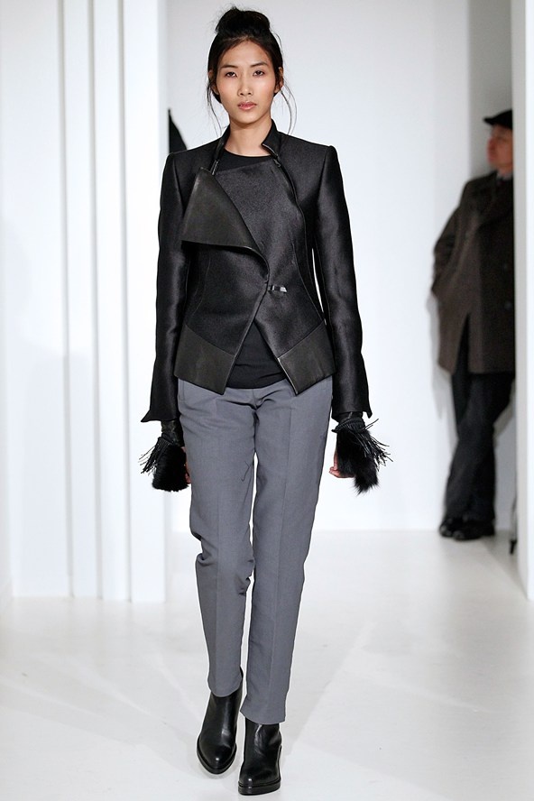Nữ người mẫu đã được lựa chọn để trình diễn 3 thiết kế trong bộ sưu tập thu đông 2014 của nhà thiết kế gốc Trung Quốc. Các thiết kế lần này của Haizhen Wang thể hiện sự thanh lịch và cá tính với chất liệu đa dạng từ da đến lông thú nhân tạo, họa tiết sọc xéo và răng cưa cũng tiếp tục được sử dụng.