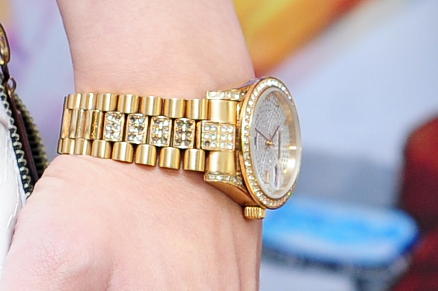 | Đồng hồ của Hoàng Tôn cũng được nạm khá nhiều đá nhỏ. |