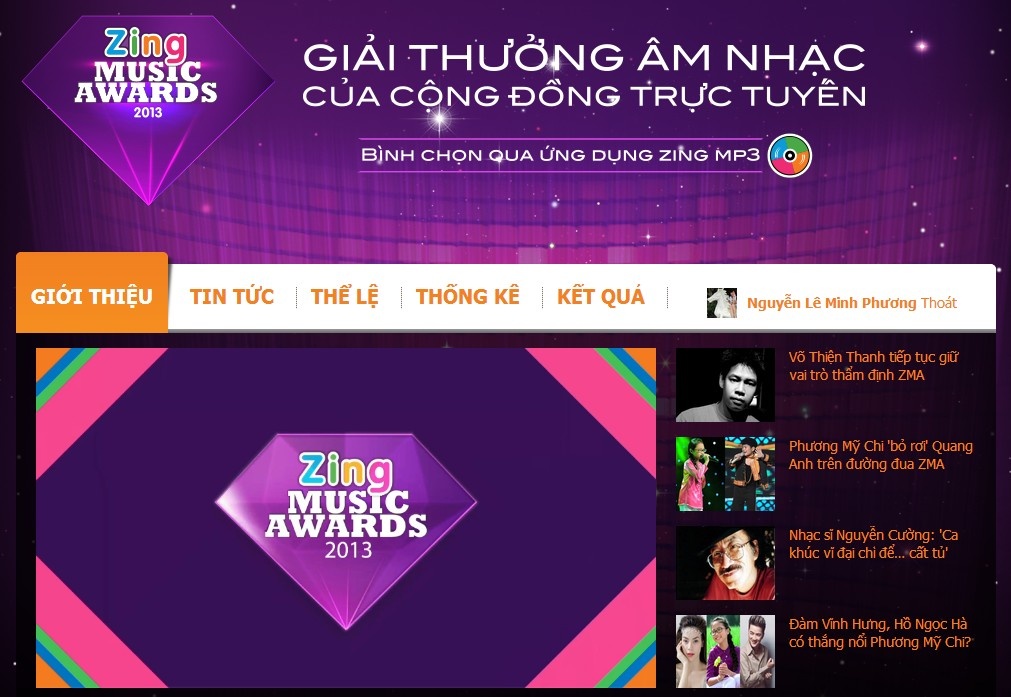 Zing Music Awards trở lại với mùa giải thứ 4 tiếp tục tôn vinh đóng góp của các tác phẩm, các nghệ sĩ cho sự phát triển của thị trường nhạc trực tuyến năm qua. Đây cũng là giải thưởng đầu tiên lấy người nghe nhạc là cốt lõi khi sử dụng chỉ số tương tác Z của người nghe làm chỉ số cơ bản đánh giá mọi hạng mục (trong đó Lượt xem/nghe chiếm 40%, lượt thích chiếm 15%, lượt bình luận chiếm 5% và lượt chia sẻ chiếm 40%). Đồng thời, giải thưởng cũng được hội đồng nghệ thuật bao gồm các chuyên gia hàng đầu trong làng nhạc Việt như NS Nguyễn Cường, Đức Trí, Võ Thiện Thanh, Huy Tuấn, Quốc Trung, Nguyễn Hải Phong, Lê Quang, ĐD Phạm Hoàng Nam,… tư vấn chuyên môn, hứa hẹn mang lại những kết quả chính xác, công tâm và minh bạch. Trong mùa giải 2013, các giải thưởng Ca khúc, MV, Album và Nghệ sĩ của năm sẽ là những giải thưởng quan trọng nhất.