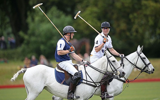 | Hoàng tử William và Harry trong trận đấu môn mã cầu. |