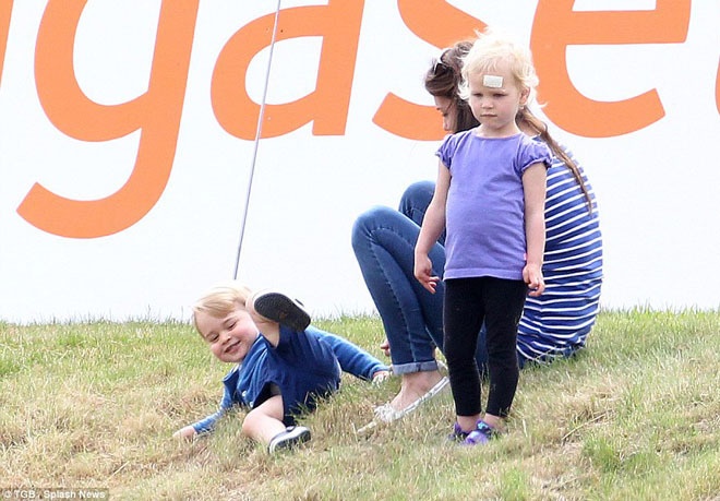 | George cười khoái chí khi ngã lăn trên cỏ. Với bản tính hiếu động, “Hoàng tử bé” không ngừng bày trò nghịch ngợm. |