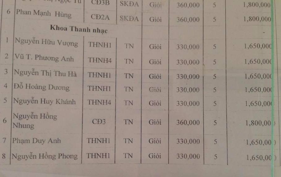 | Đỗ Hoàng Dương đứng vị trí thứ 4 trong bảng tổng kết toàn khoa Thanh nhạc, Cao đẳng Nghệ thuật Hà Nội năm học 2014-2015. Ảnh: NVCC. |