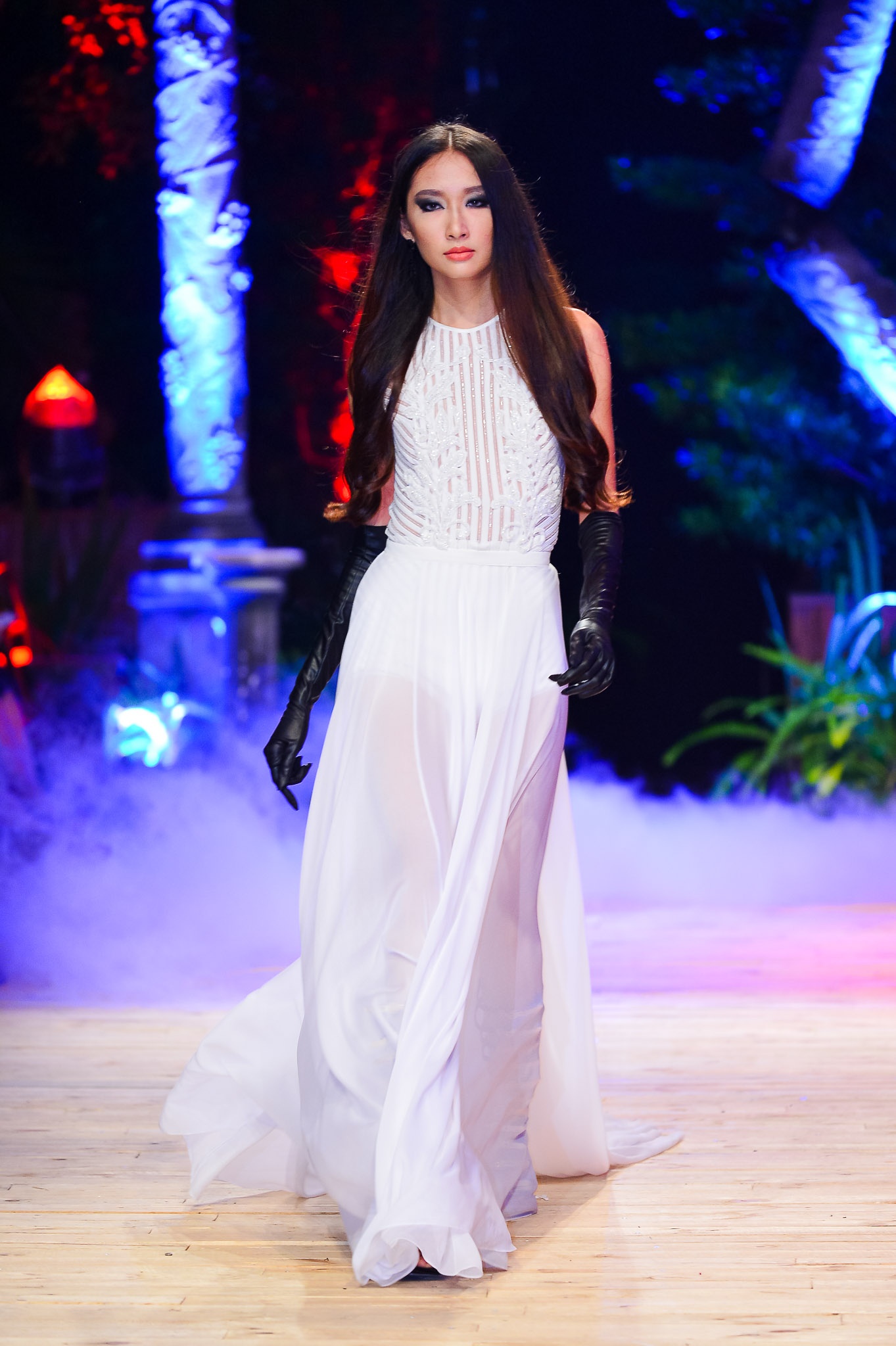 | Bộ sưu tập sử dụng chất liệu quen thuộc của mùa mốt 2015 – 2016 như ren, voan, chiffon, đăng-ten, nhưng được Chung Thanh Phong làm mới bằng kỹ thuật xử lý chất liệu thượng hạng. Thay cho họa tiết, anh nâng tầm cho hai tông màu đen trắng bằng việc kết cườm, đính ngọc trai và thêu nổi tinh tế. |