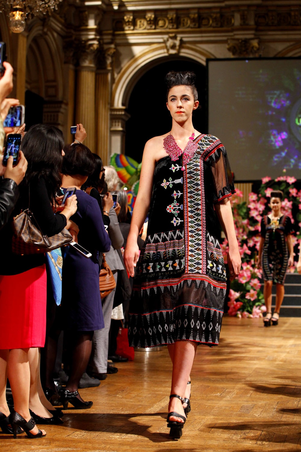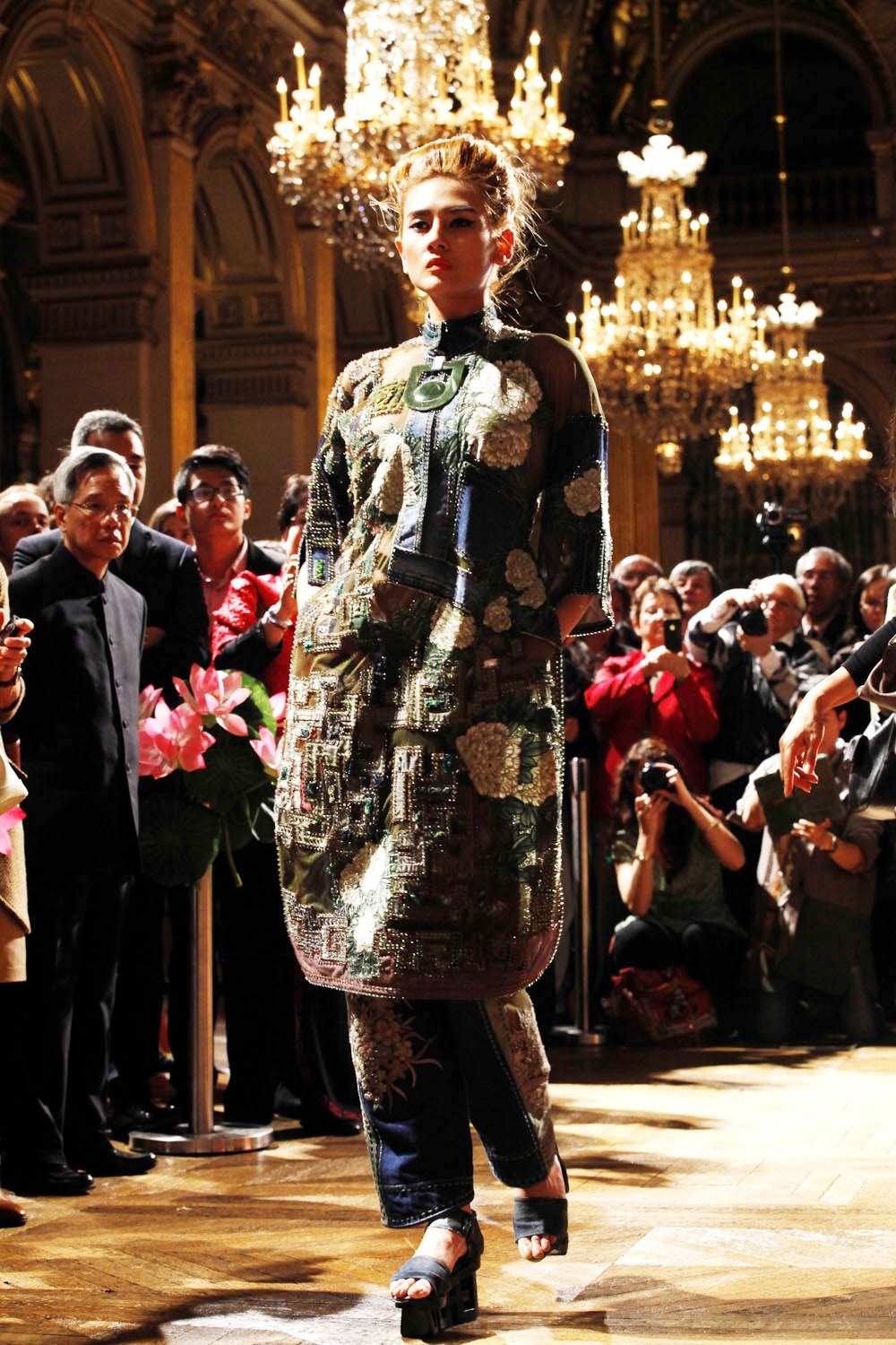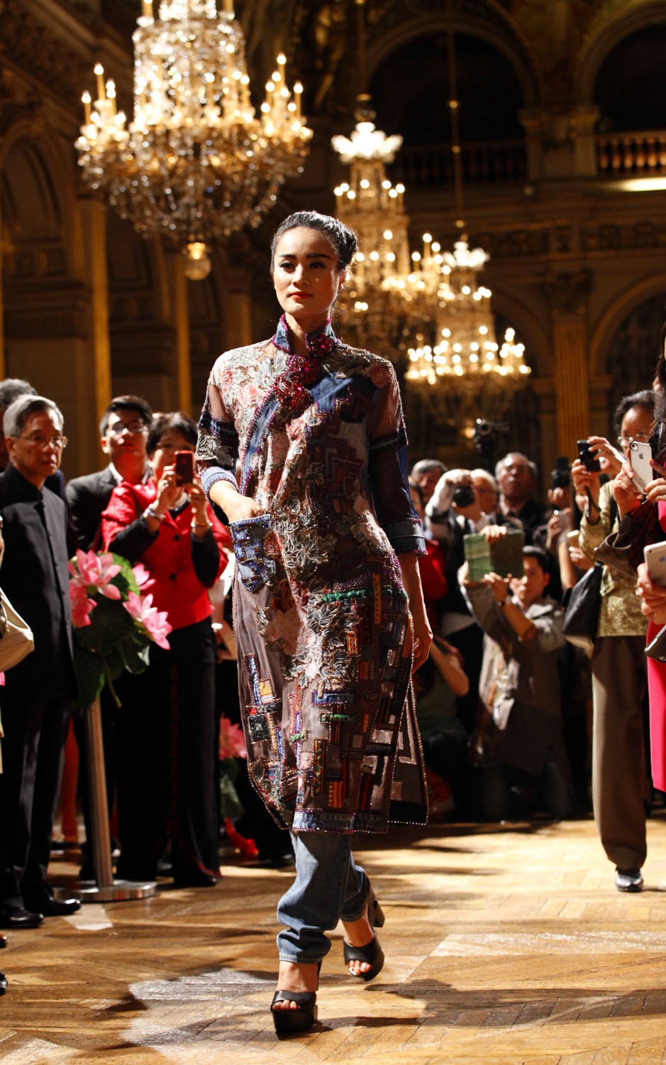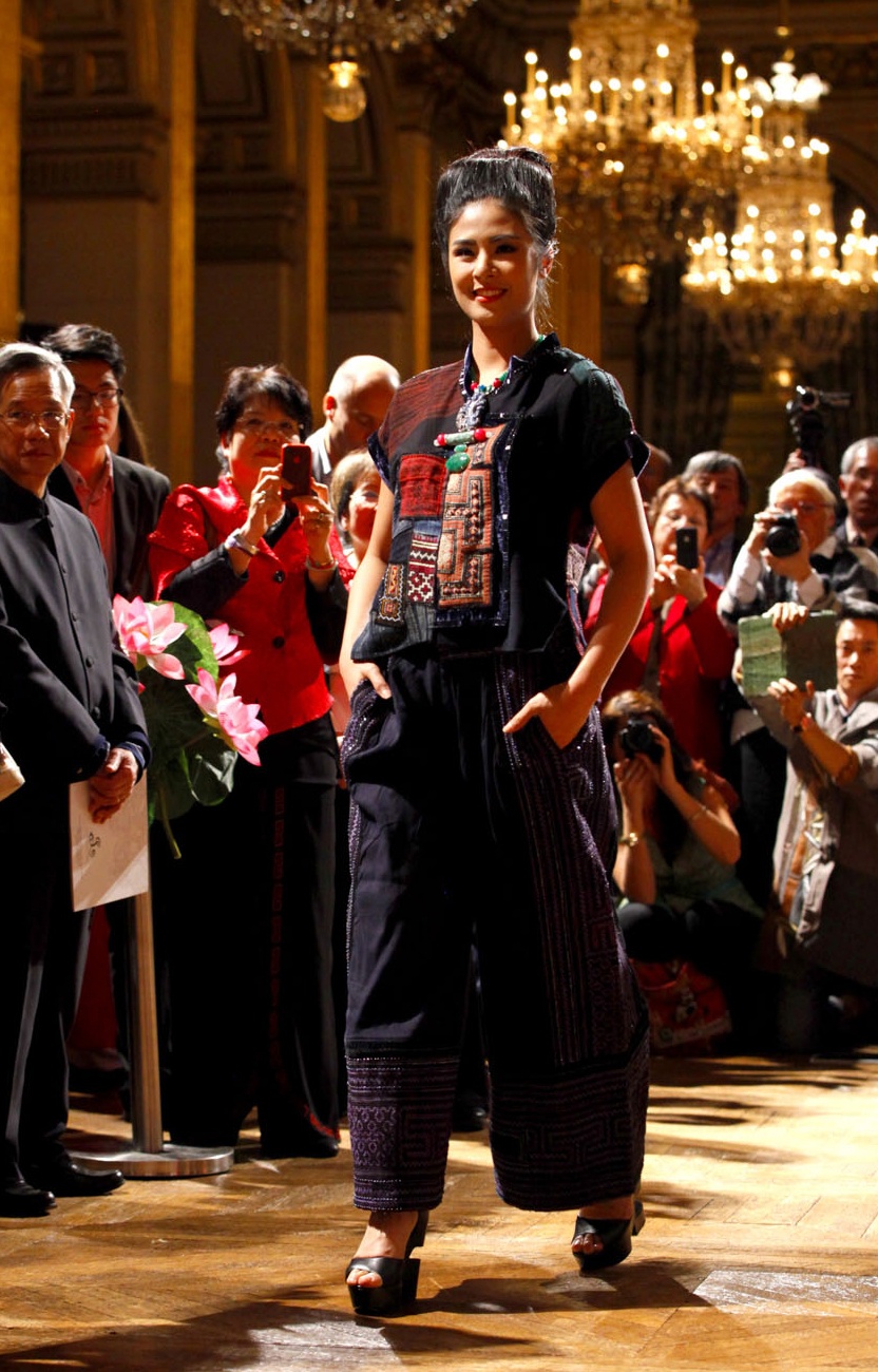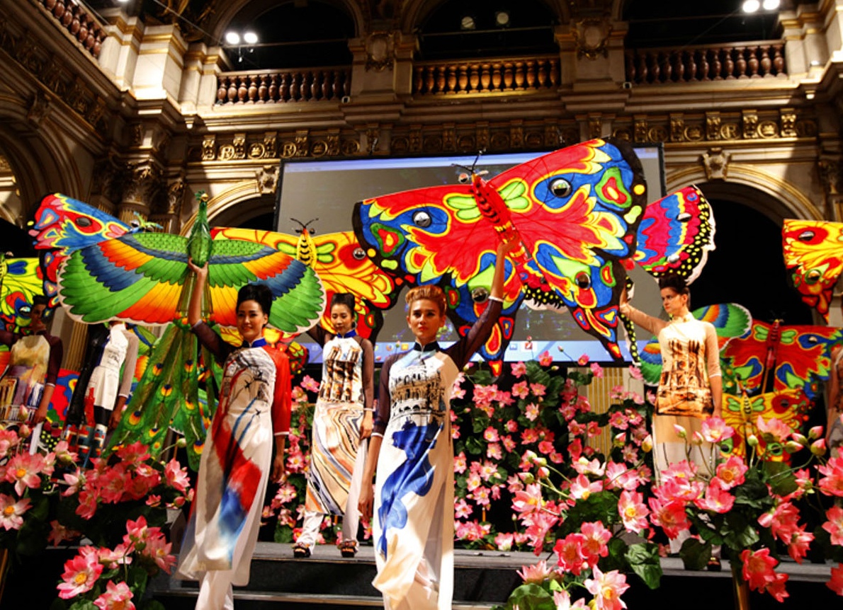| Giữa sàn diễn thời trang cao cấp, ngập tràn ánh sáng thời thượng, cùng đông đảo người xem quốc tế, chân dài người Việt khoác lên mình các thiết kế đậm hồn dân tộc, tự tin sải bước cùng nụ cười rạng rỡ thường trực. |