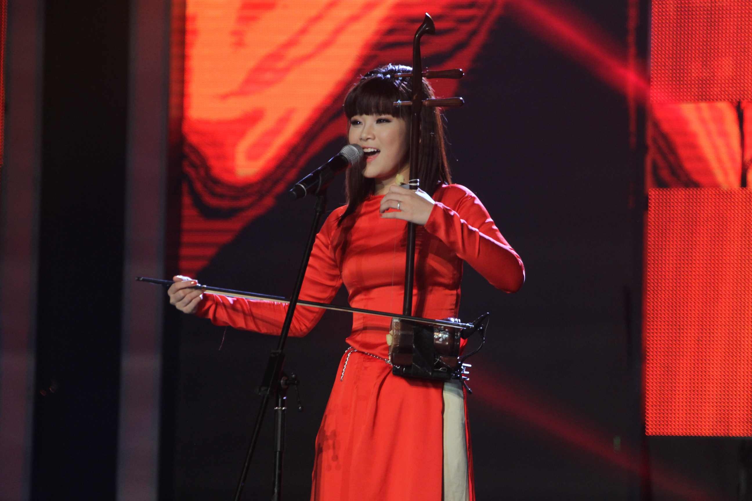 | Xuất hiện với chiếc áo dài tông đỏ và vàng gợi nhớ đến hình ảnh quốc kỳ dân tộc, Hoàng Yến ghi điểm khi trình diễn thuần thục một loại nhạc cụ truyền thống là đàn nhị. Cô kết hợp nhạc cụ này trong ca khúc từng gây sốt về chủ đề quê hương, đất nước - Hello Vietnam - khiến người nghe có những trải nghiệm mới lạ. Phần trình diễn của Hoàng Yến hoàn toàn thuyết phục nữ ca sĩ Phương Linh: "Em vẫn luôn xinh xắn trong mắt chị nhưng hôm nay thì em còn đẹp hơn rất nhiều nhờ chính giai điệu bài hát và những sáng tạo tuyệt vời". |