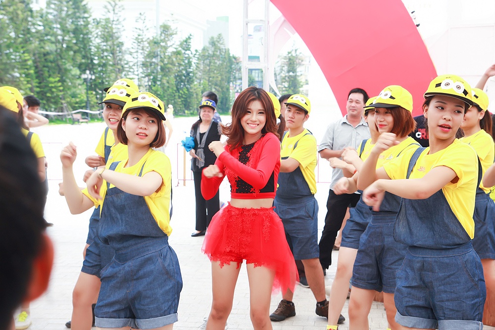 | Để khuấy động không khí, Hoàng Yến Chibi đã cùng dàn vũ công trình diễn những động tác nhảy trẻ trung và sôi động. |