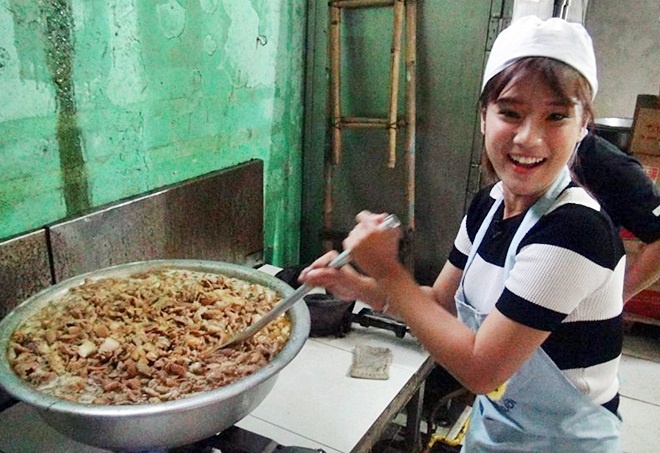 | Hoàng Yến Chibi trải nghiệm công việc phục vụ ở quán ăn dành cho người nghèo khi tự tay nấu cơm, kho thịt, rửa bát... |