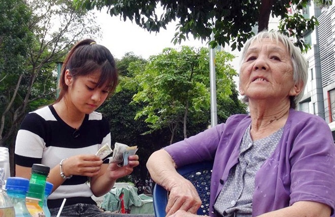 | Hot girl đi bán trà đá ở công viên để kiếm được 50.000 đồng quyên góp từ thiện. |