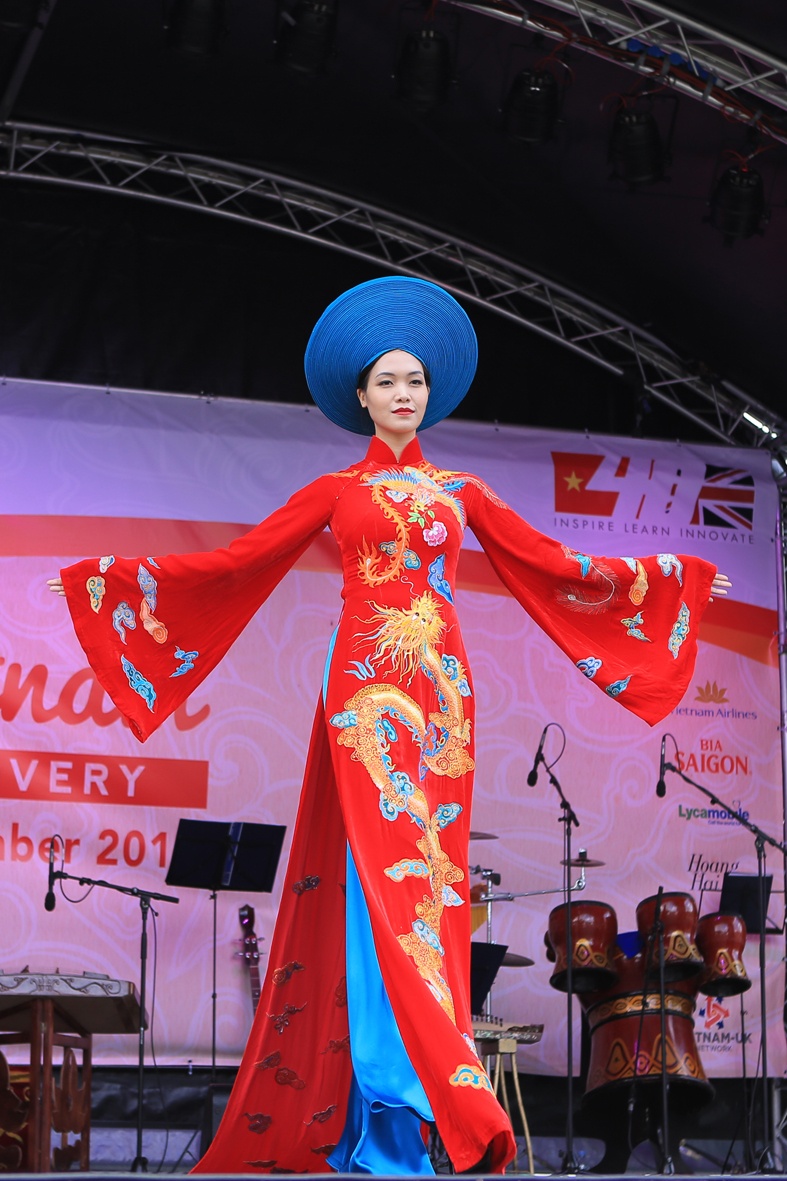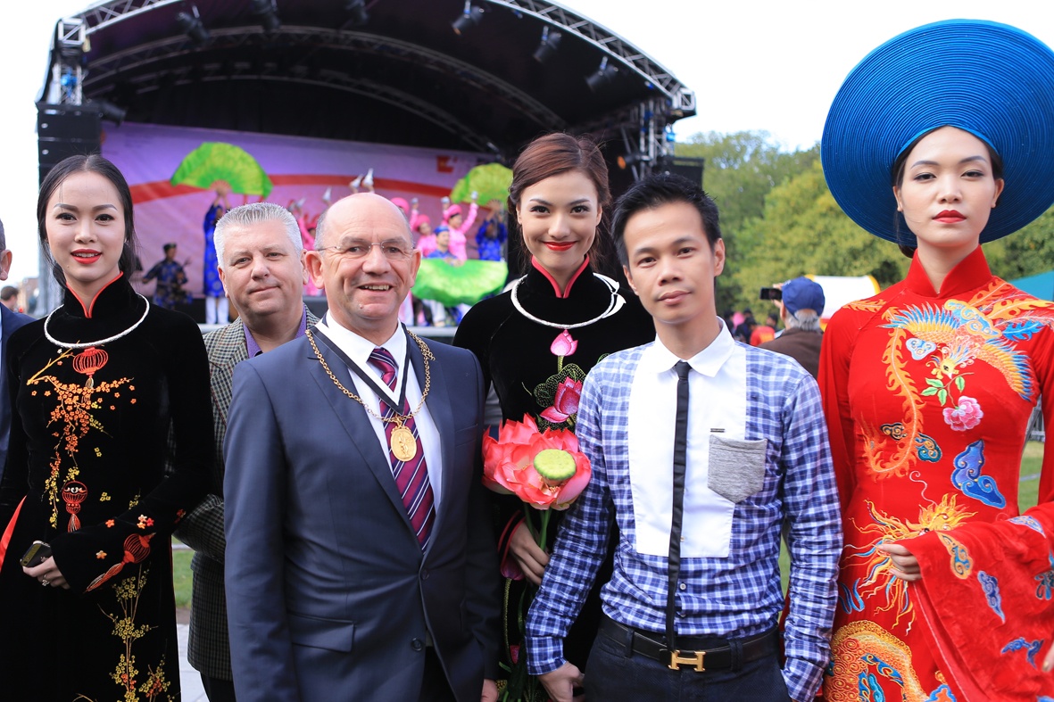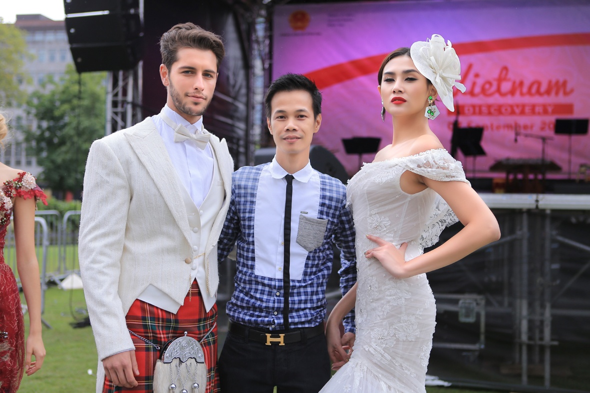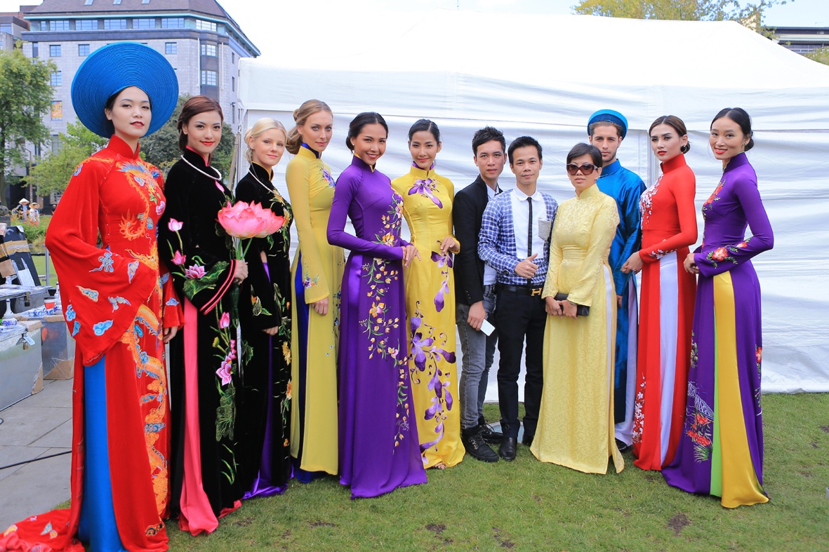 | NTK Hoàng Hải cùng các người mẫu và đại diện của sứ quán VIệt Nam, phía Anh quốc... trong ngày hội giao lưu văn hóa. |