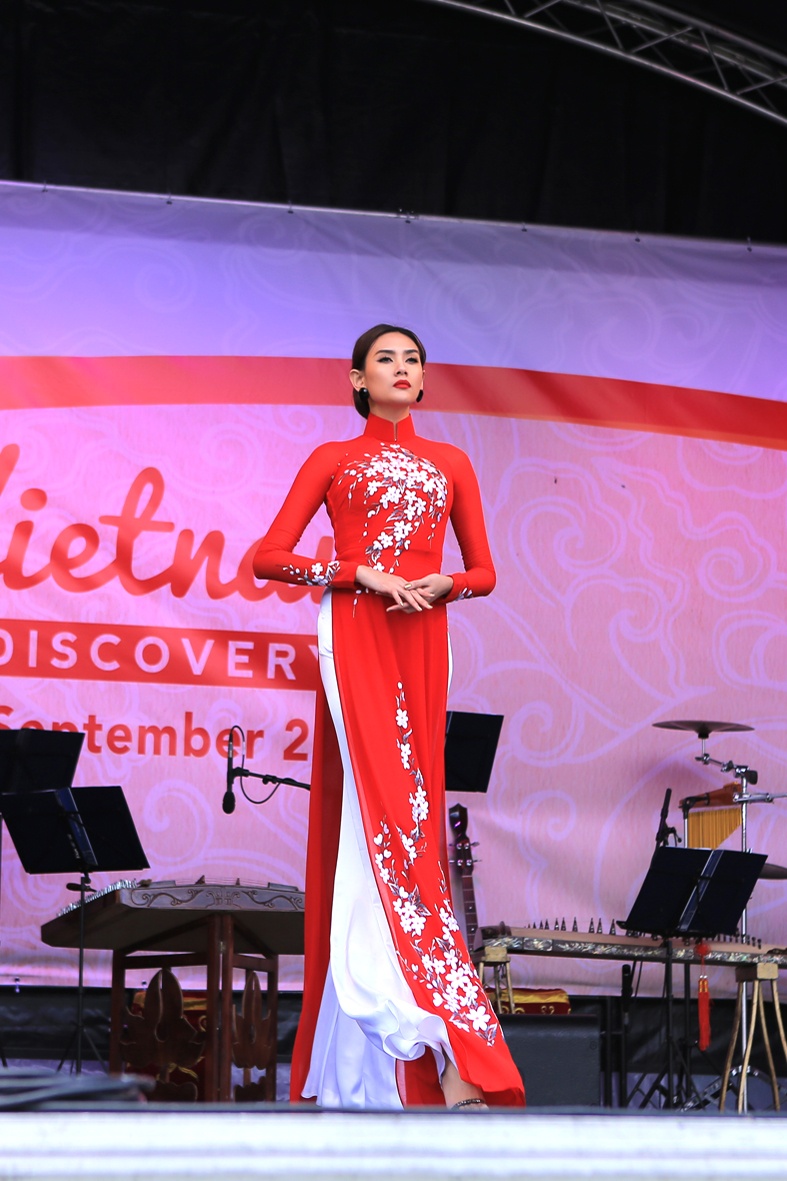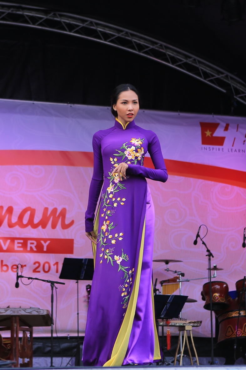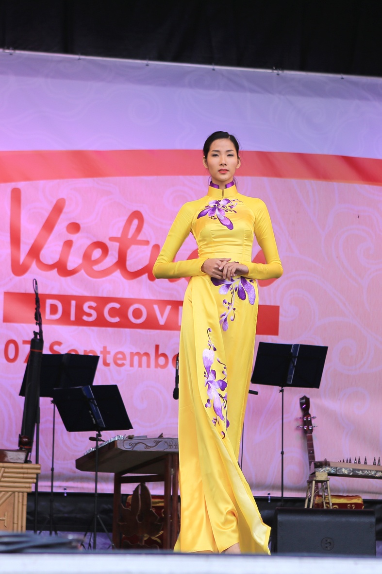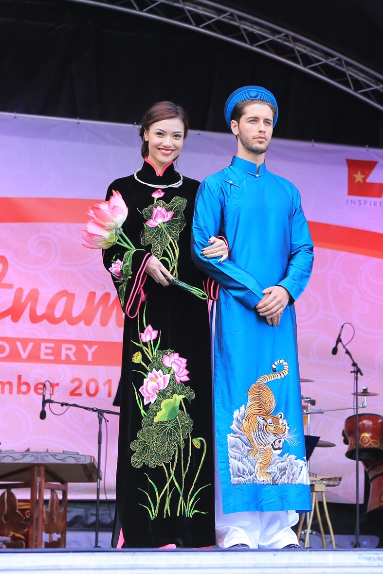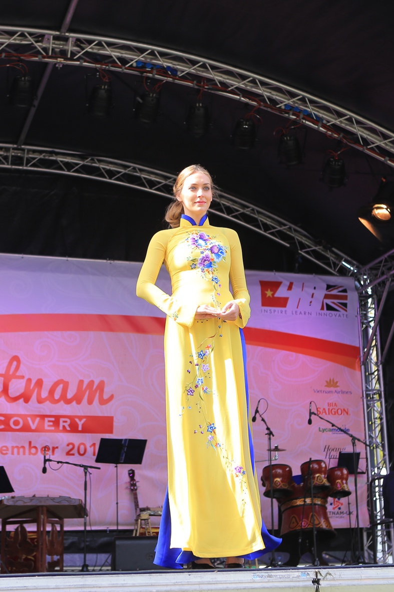 | Người mẫu Tây cũng diện áo dài trình diễn rất chuyên nghiệp. |