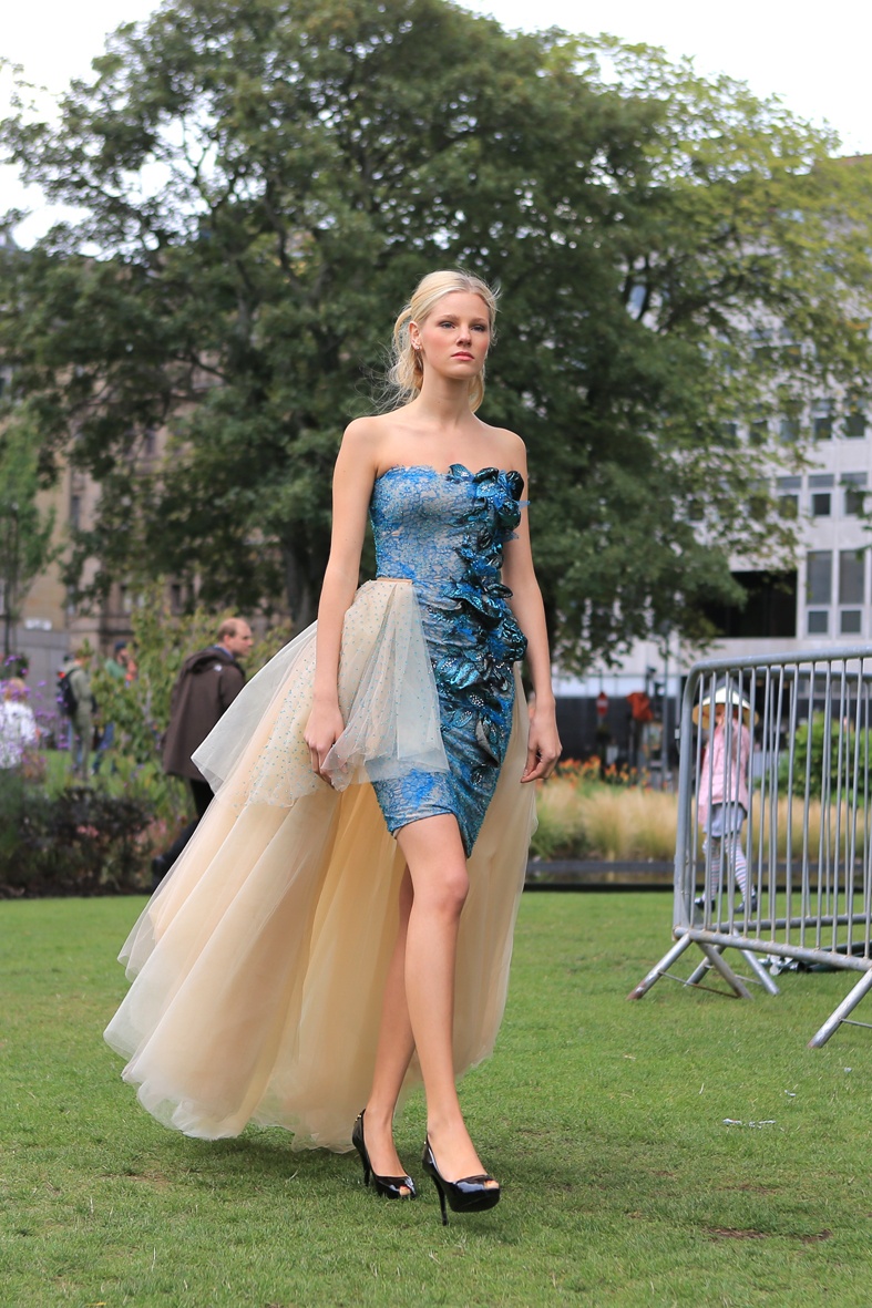 | Ông Andy Neil - giám đốc điều hành của đơn vị quản lý quảng trường St. Andrew và các trung tâm thương mại quanh đó - thích thú BST này vô cùng. Ông thậm chí còn muốn mời Hoàng Hải trưng bày các thiết kế dạ hội của mình tại các cửa hàng thời trang thuộc sở hữu của mình. |