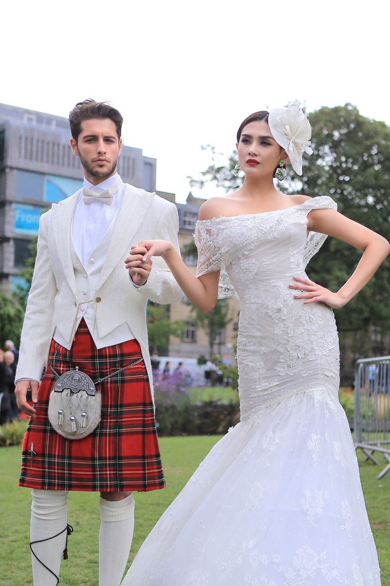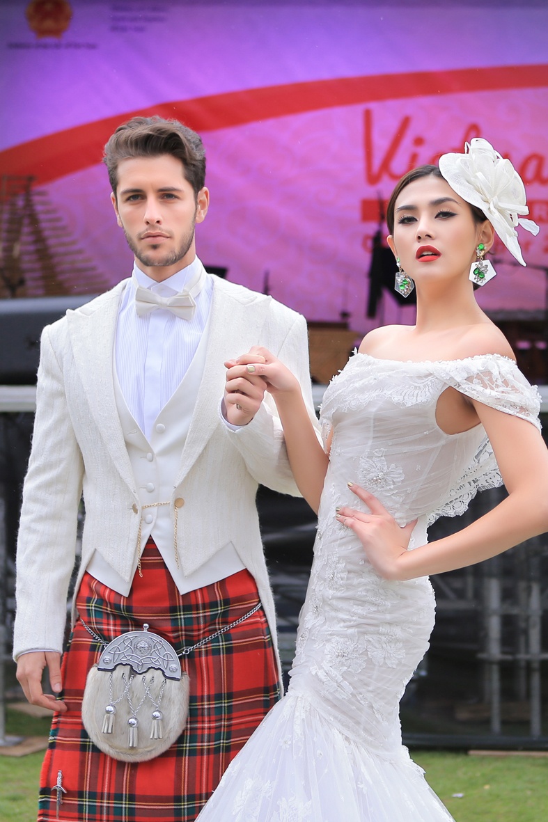 | Trình diễn cùng một anh chàng mặc trang phục truyền thống của người Scotland nhưng Võ Hoàng Yến không tỏ ra lo lắng. Trái lại, cô rất tự tin và quyến rũ khi biểu diễn. |
