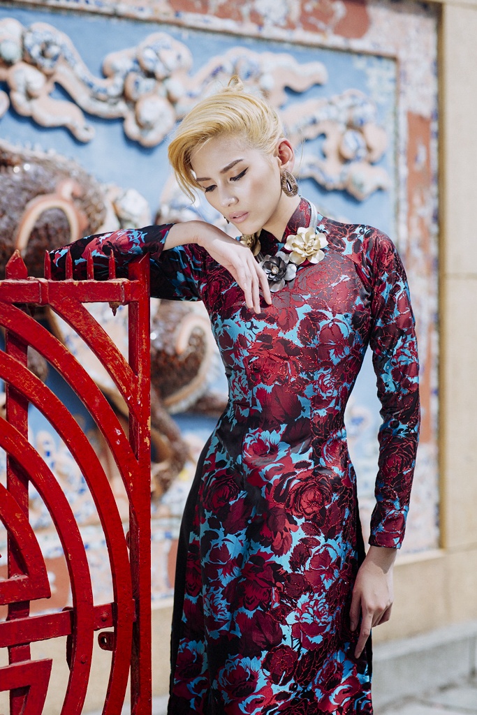 | Hoàng Yến cho biết, cô yêu thích nét đẹp truyền thống và áo dài luôn là nguồn cảm hứng để cô thể hiện tốt bộ ảnh mừng xuân Ất Mùi. Trong ảnh, nữ người mẫu cá tính diện áo dài họa tiết hoa xuân lãng mạn. Tông màu trầm đỏ và đen phối hợp ăn ý, phù hợp với vẻ đẹp sắc lạnh của Giải vàng Siêu mẫu Việt Nam 2008. |