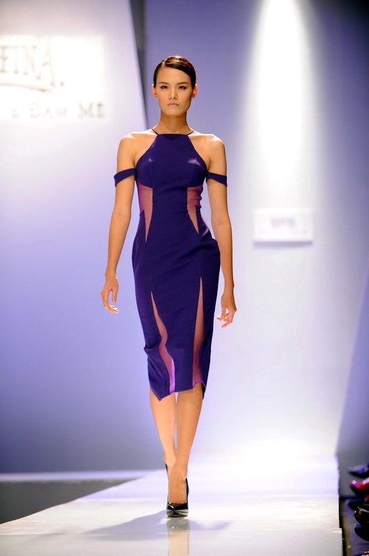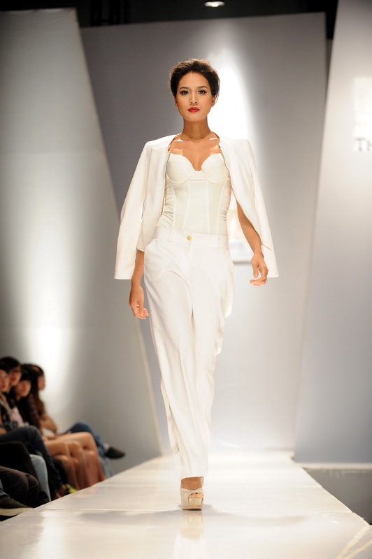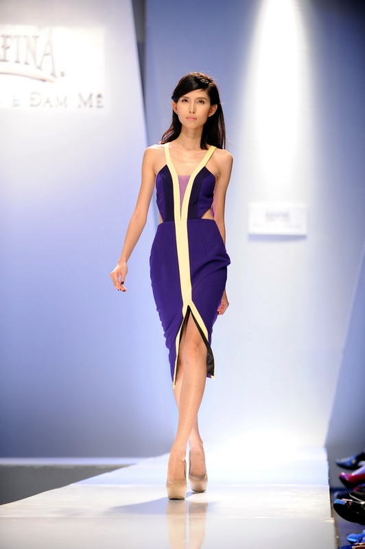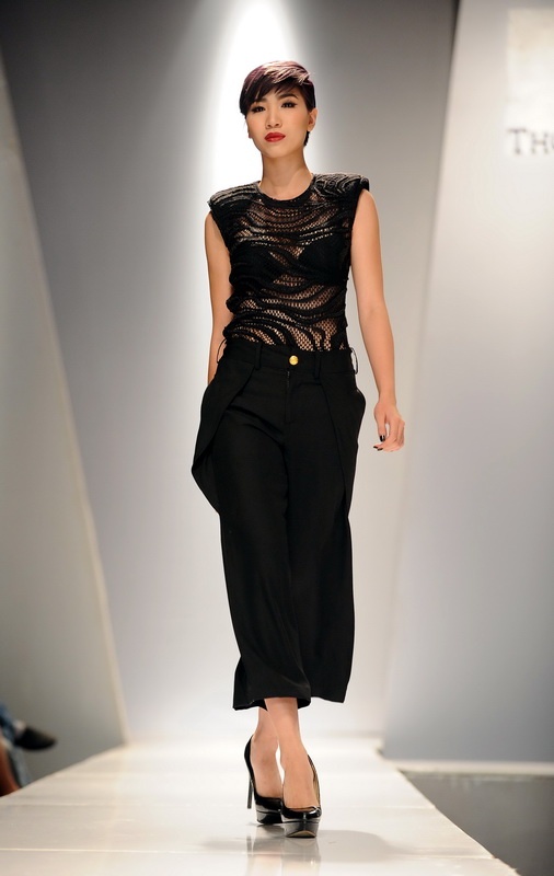 | Trang phục cut-out vẫn được các NTK Việt tận dụng trong năm 2014. Người mẫu Trang Phạm trình diễn tự tin. |