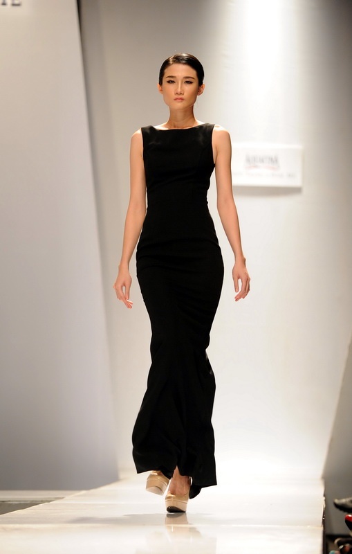 | Mẫu váy dạ hội gam màu trơn, tối giản họa tiết được giới thiệu trên sàn diễn tối qua. |