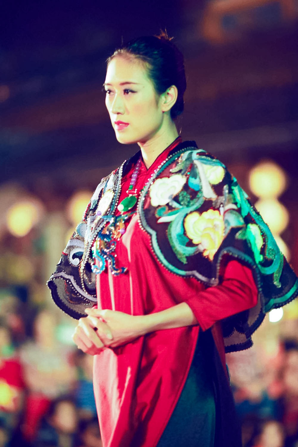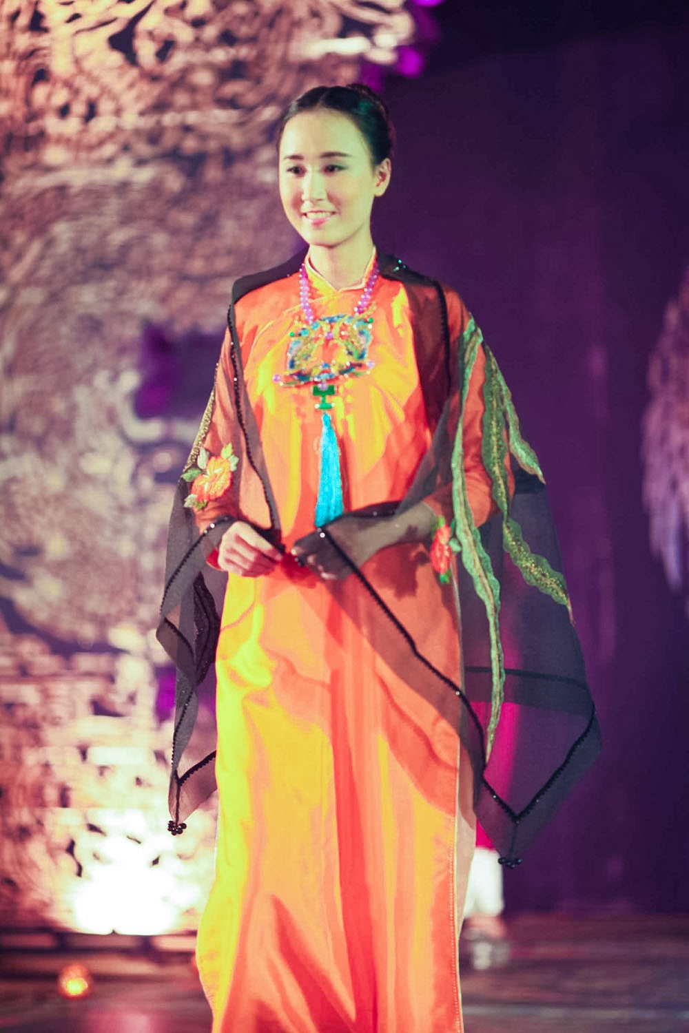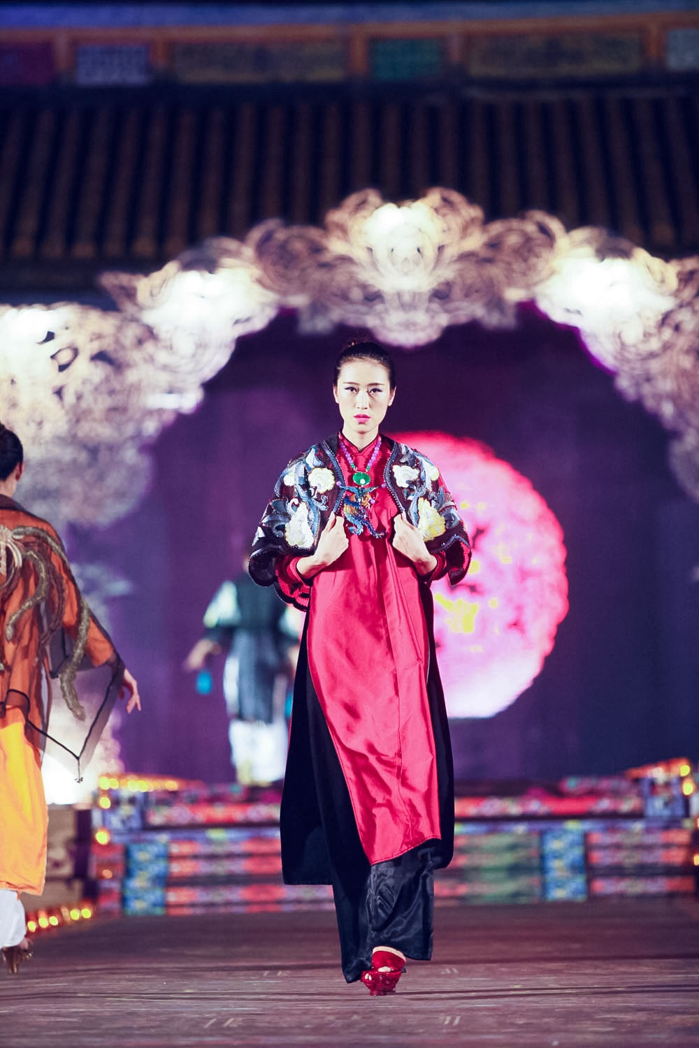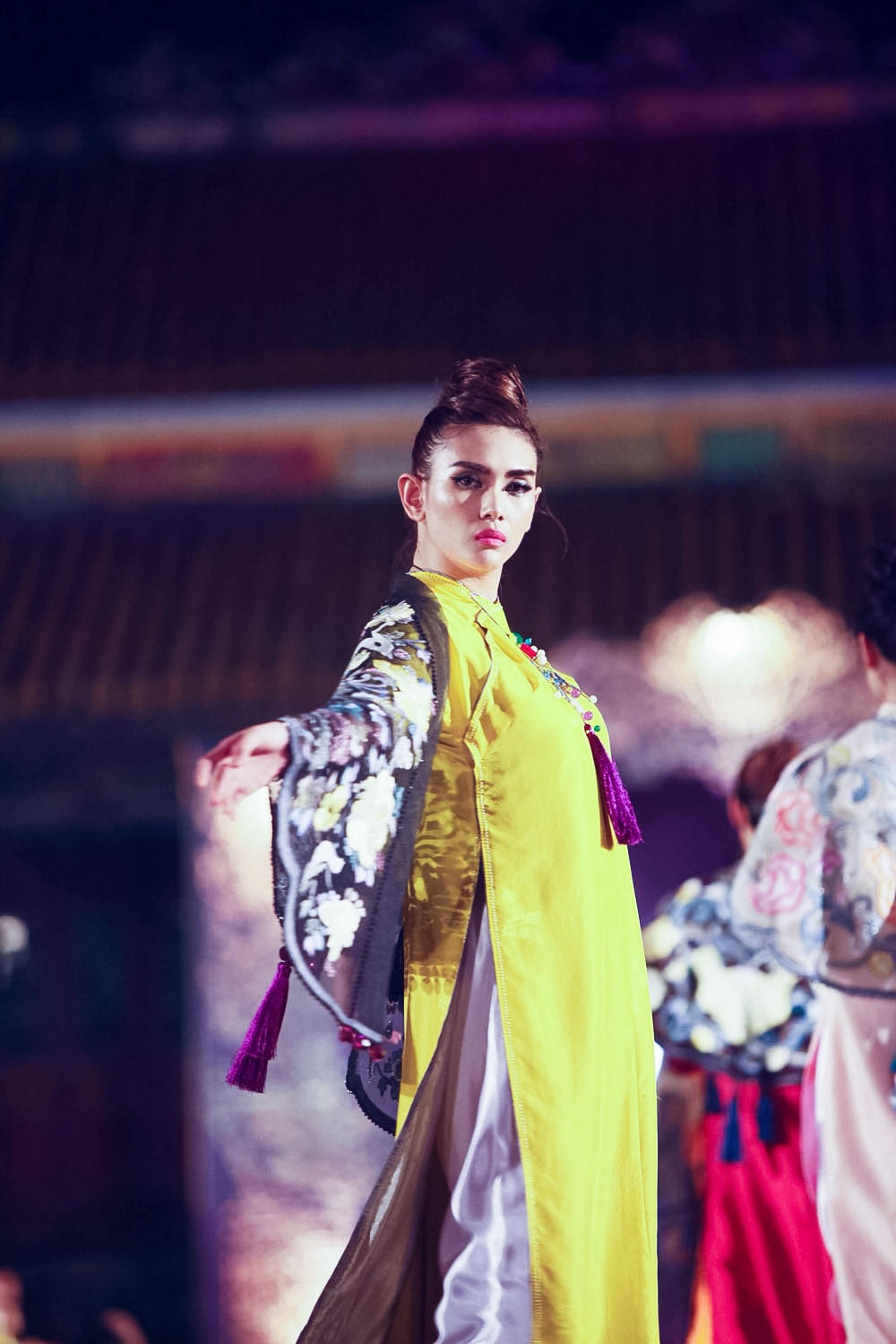 | Bên cạnh đó, điểm mới lạ của BST là phụ kiện trang sức pháp lam. Đây là một trong những nét đặc trưng của hoàng tộc và vua chúa thời nhà Nguyễn. Phương pháp chế tác đã bị thất truyền và đang được các nhà nghiên cứu hồi phục. NTK đưa vẻ đẹp của dân gian vào BST này như một món quà gửi đến Huế. |