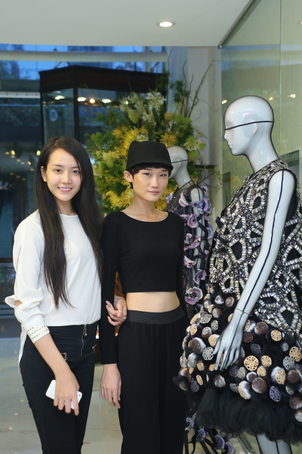 Lê Thu An xem một mẫu váy ấn tượng.