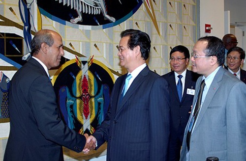 | Thủ tướng Nguyễn Tấn Dũng hội kiến Tổng thư ký Liên Hợp Quốc Ban Ki-moon vào sáng 28/9 theo giờ Hà Nội. Ảnh: Reuters. |