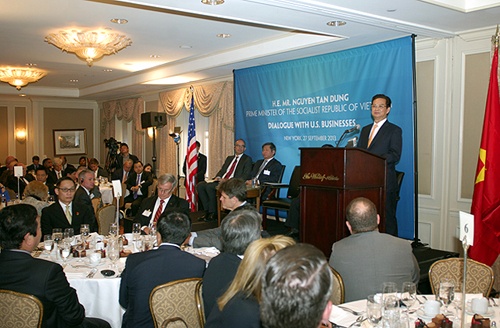 | Tại Diễn đàn đầu tư Việt-Mỹ ở New York vào trưa 27/9, Thủ tướng đối thoại với lãnh đạo của 50 doanh nghiệp Mỹ. Ảnh: chinhphu.vn. |